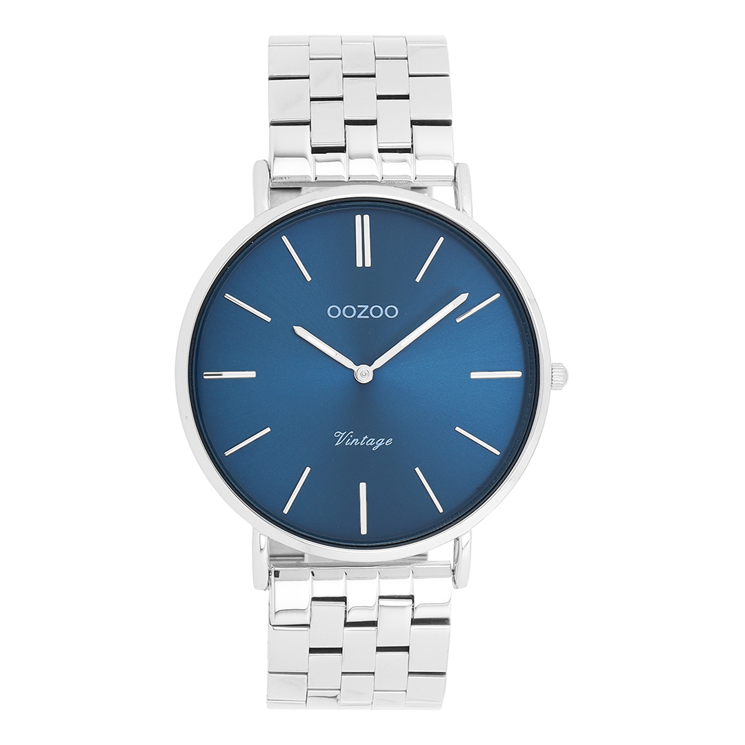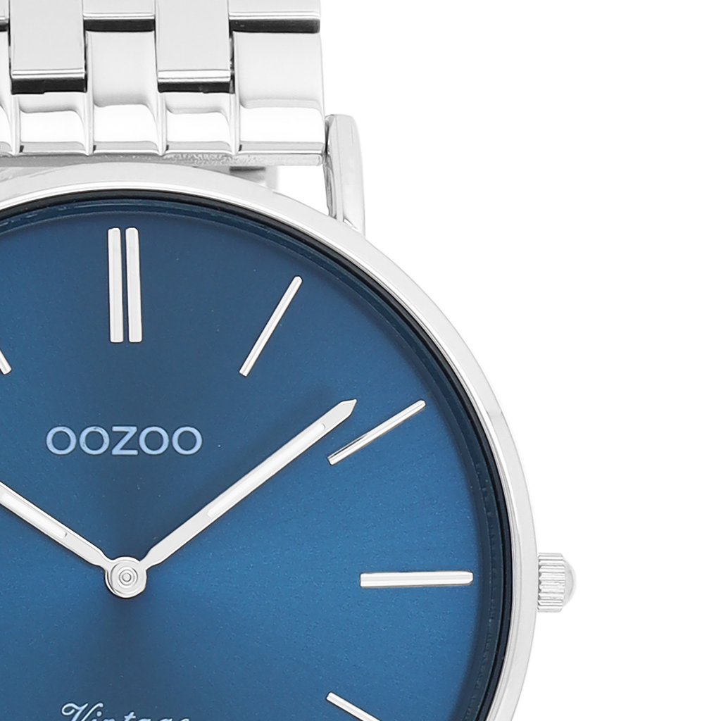 The classic look stays key in this trendy series and therefore, this round OOZOO vintage design with a playful wink is the season must-have! This unisex watch is the perfect combination of fashion and comfort with its 40 mm silver coloured metal watch case and blue sunray dial. The shiny silver coloured stainless steel bracelet makes this watch a trendy accessory, which you can wear every day. The dial has silver coloured stripes digits and matching hands. The C20401 adds the sparkle to your outfit. The mineral glass lays in a mm slim metal watch case with IP-plating. This design has a stainless steel backplate and is nickel safe. This watch has a 2ATM Japanese movement and is covered by a 2 year warranty (see section 3 of our Refund, shipping & warranty policy).
