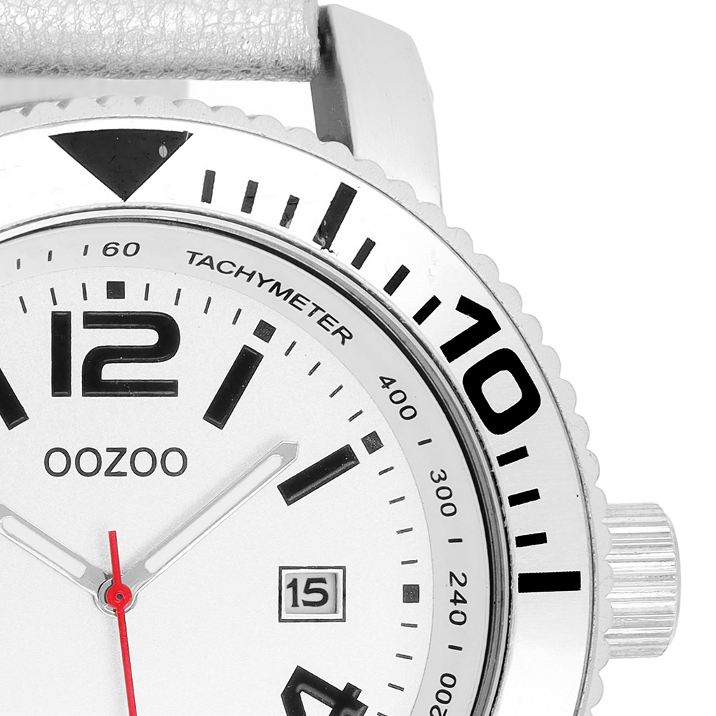 Stand out with this beautiful round gents design from the trendy OOZOO Timepieces collection. The C2586 has a stitched white leather strap and 50 mm silver coloured metal watch case. You are making quite the fashion statement with this white dial, black stripes and numbers digits and silver coloured/red hands. This essential watch for your wardrobe has a mineral glass, stainless steel backplate and is nickel safe. This watch has a 2 Japanese movement and is covered by a 2 year warranty (see section 3 of our Refund, shipping & warranty policy).