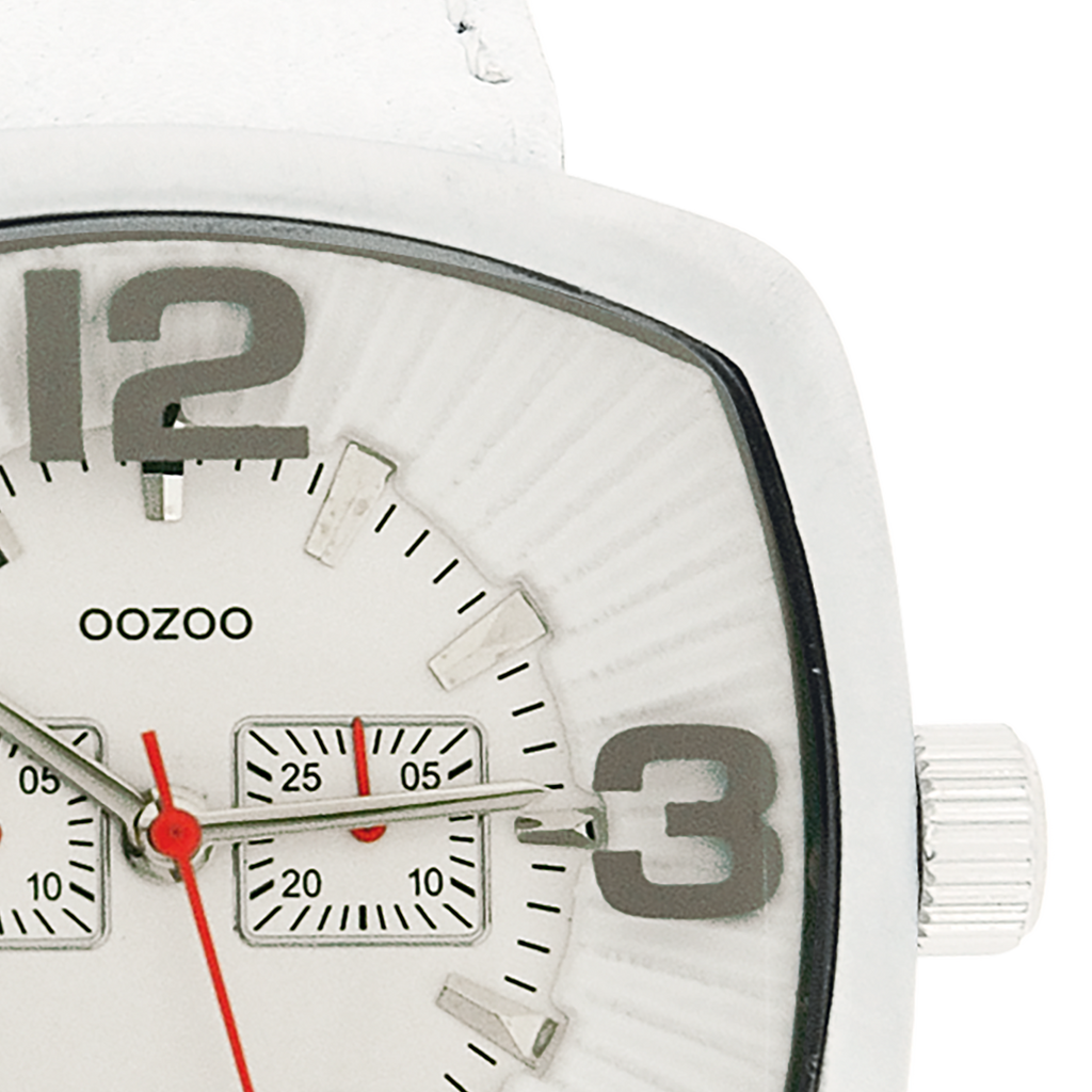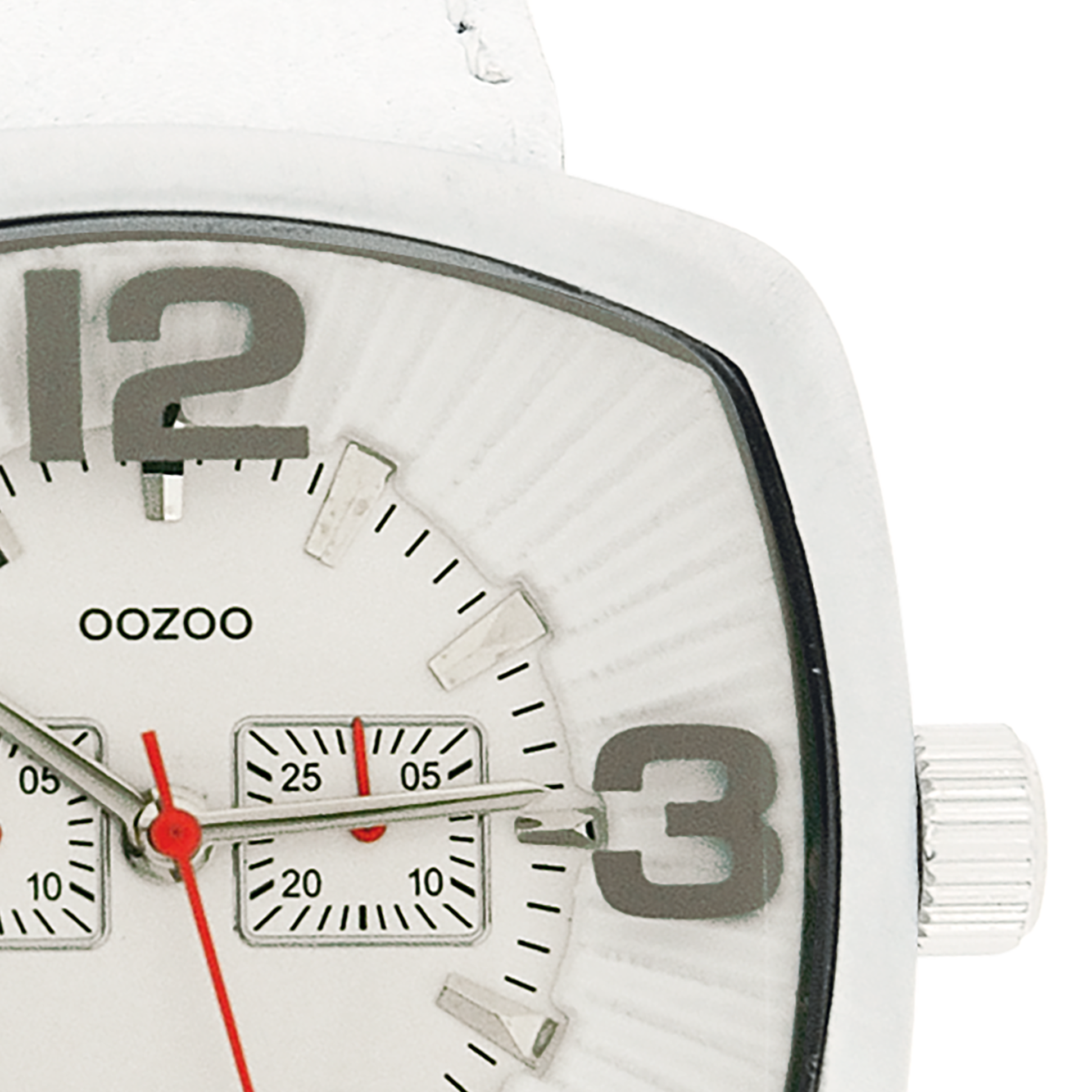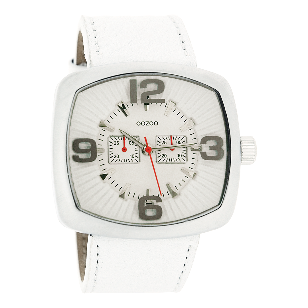 Stand out with this beautiful square ladies design from the trendy OOZOO Timepieces collection. The C3261 has a stitched white leather strap and 45x42 mm silver coloured metal watch case. You are making quite the fashion statement with this white dial, black stripes and numbers digits and silver coloured/red hands. This essential watch for your wardrobe has a mineral glass, stainless steel backplate and is nickel safe. This watch has a 2 Japanese movement and is covered by a 2 year warranty (see section 3 of our Refund, shipping & warranty policy).
