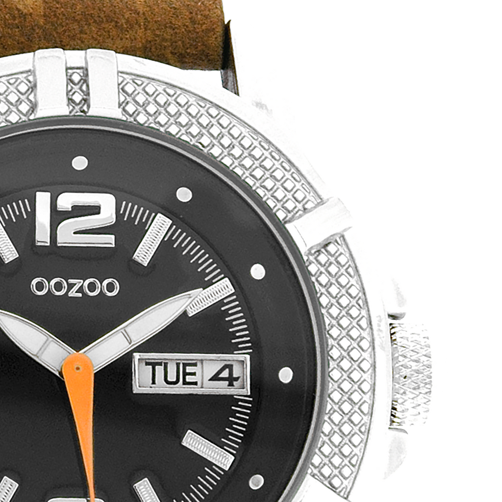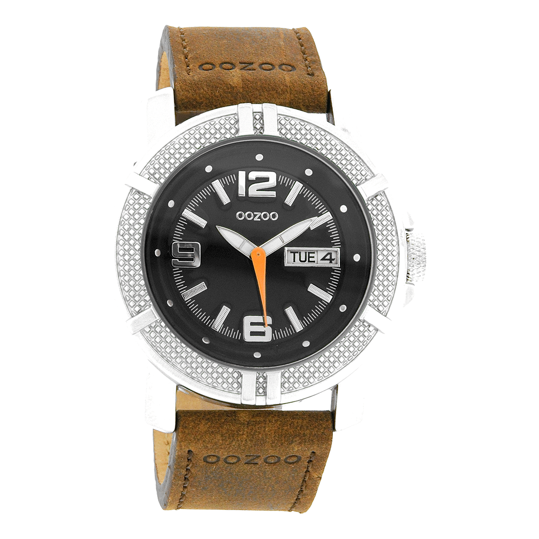 Stand out with this beautiful round gents design from the trendy OOZOO Timepieces collection. The C4107 has a stitched cognac leather strap and 42 mm silver coloured metal watch case. You are making quite the fashion statement with this dark brown dial, silver coloured stripes and numbers digits and silver coloured/white/orange hands. This essential watch for your wardrobe has a mineral glass, stainless steel backplate and is nickel safe. This watch has a 2 Japanese movement and is covered by a 2 year warranty (see section 3 of our Refund, shipping & warranty policy).