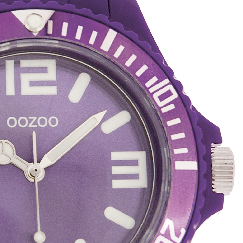 Stand out with this beautiful round unisex design from the trendy OOZOO Timepieces collection. The C4286 has a purple rubber strap and 48 mm purple plastic watch case. You are making quite the fashion statement with this purple sunray dial, white stripes and numbers digits and silver coloured/white hands. This essential watch for your wardrobe has a mineral glass, stainless steel backplate and is nickel safe. This watch has a 2 Japanese movement and is covered by a 2 year warranty (see section 3 of our Refund, shipping & warranty policy).