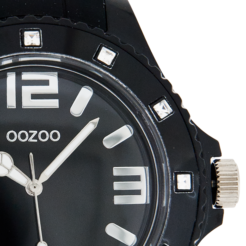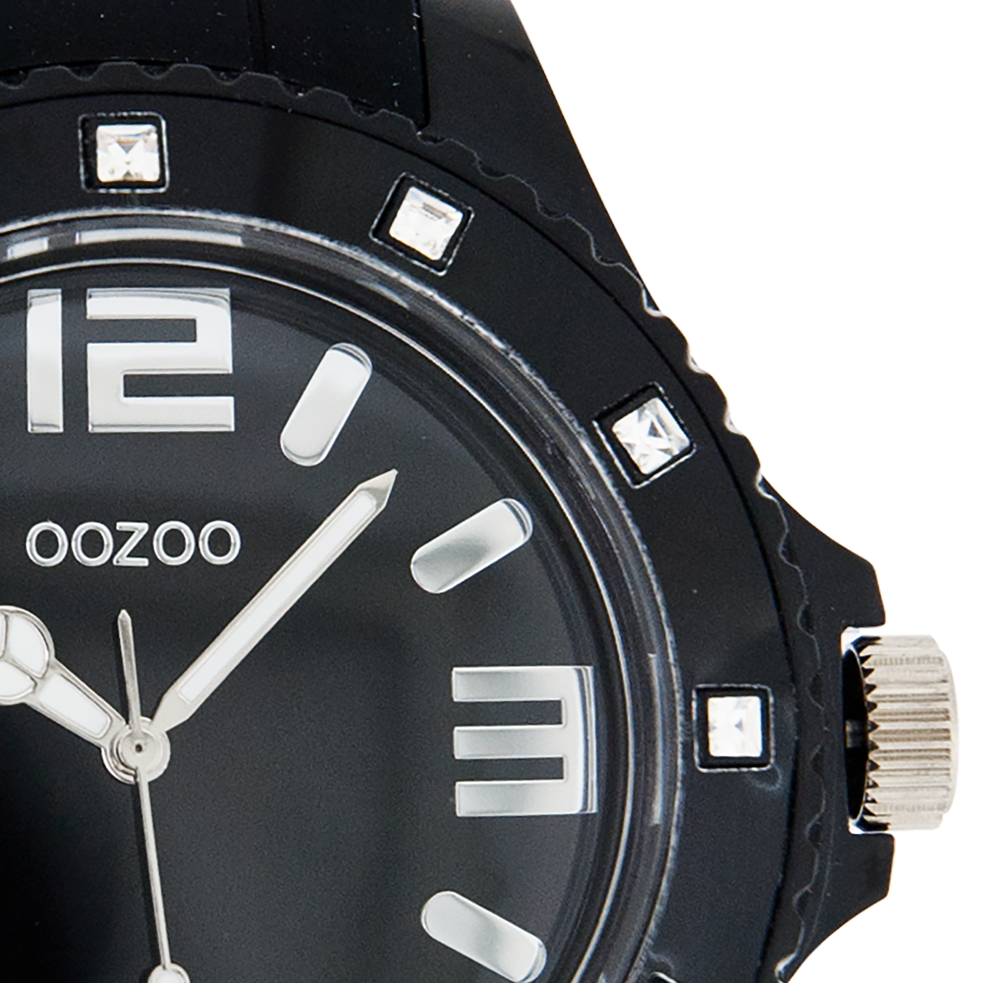 Stand out with this beautiful round unisex design from the trendy OOZOO Timepieces collection. The C4340 has a black rubber strap and 48 mm black plastic watch case. You are making quite the fashion statement with this black dial, silver coloured stripes and numbers digits and silver coloured/white hands. This essential watch for your wardrobe has a mineral glass, stainless steel backplate and is nickel safe. This watch has a 2 Japanese movement and is covered by a 2 year warranty (see section 3 of our Refund, shipping & warranty policy).