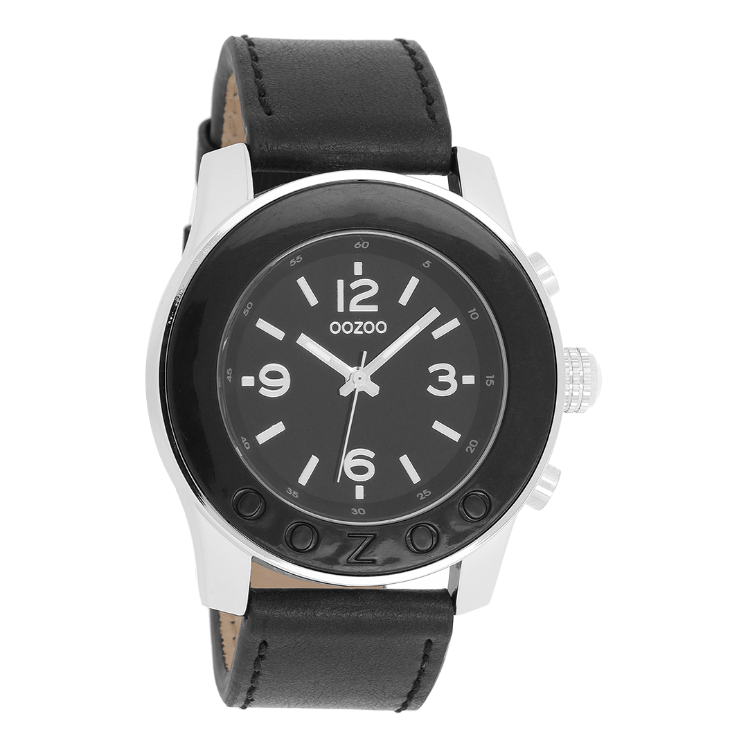 Silver coloured OOZOO watch with black leather strap - C4569