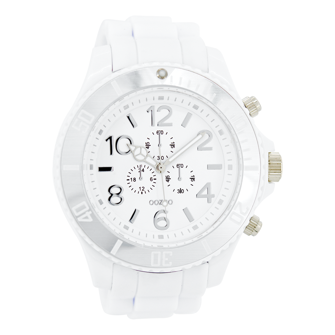 Silver coloured OOZOO watch with white rubber strap - C4820