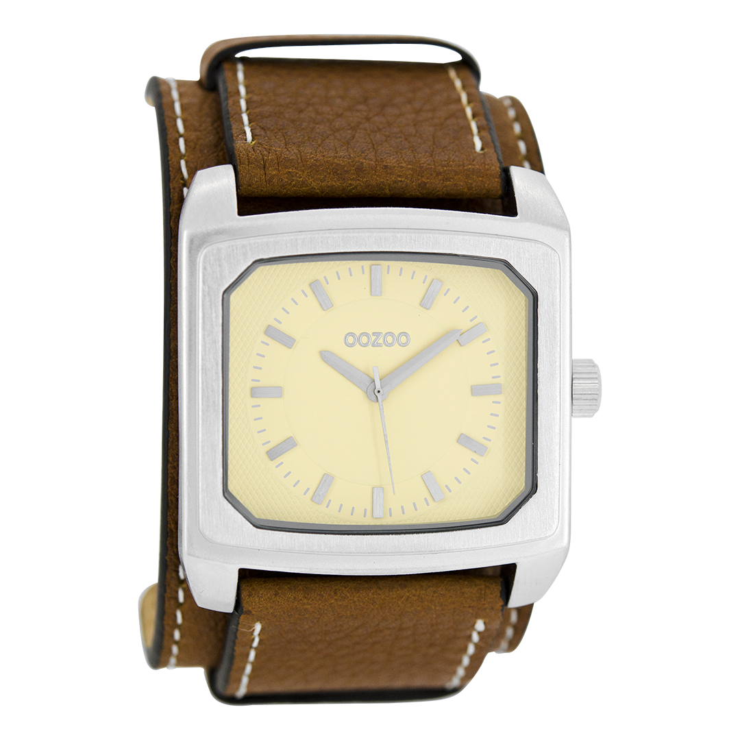 Stand out with this beautiful square gents design from the trendy OOZOO Timepieces collection. The C5211 has a stitched cognac leather strap and 45x42 mm silver coloured metal watch case. You are making quite the fashion statement with this cream dial, silver coloured stripes digits and matching hands. This essential watch for your wardrobe has a mineral glass, stainless steel backplate and is nickel safe. This watch has a 2 Japanese movement and is covered by a 2 year warranty (see section 3 of our Refund, shipping & warranty policy).