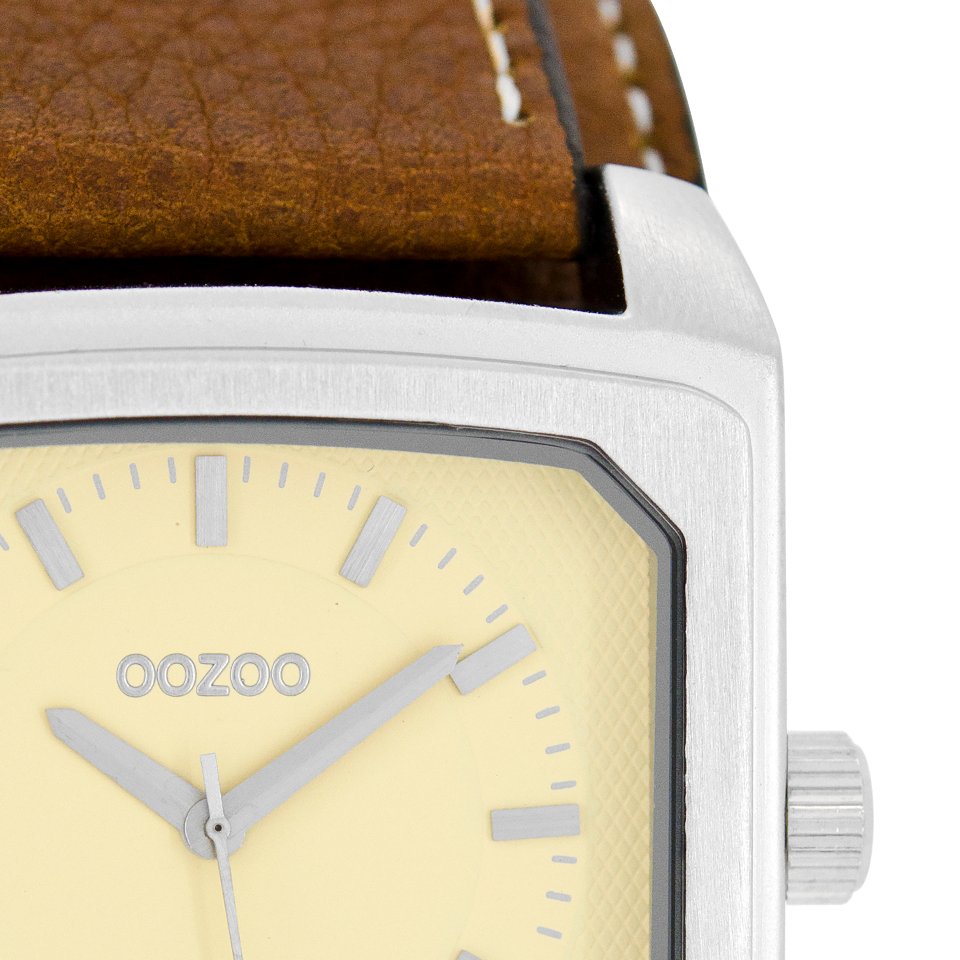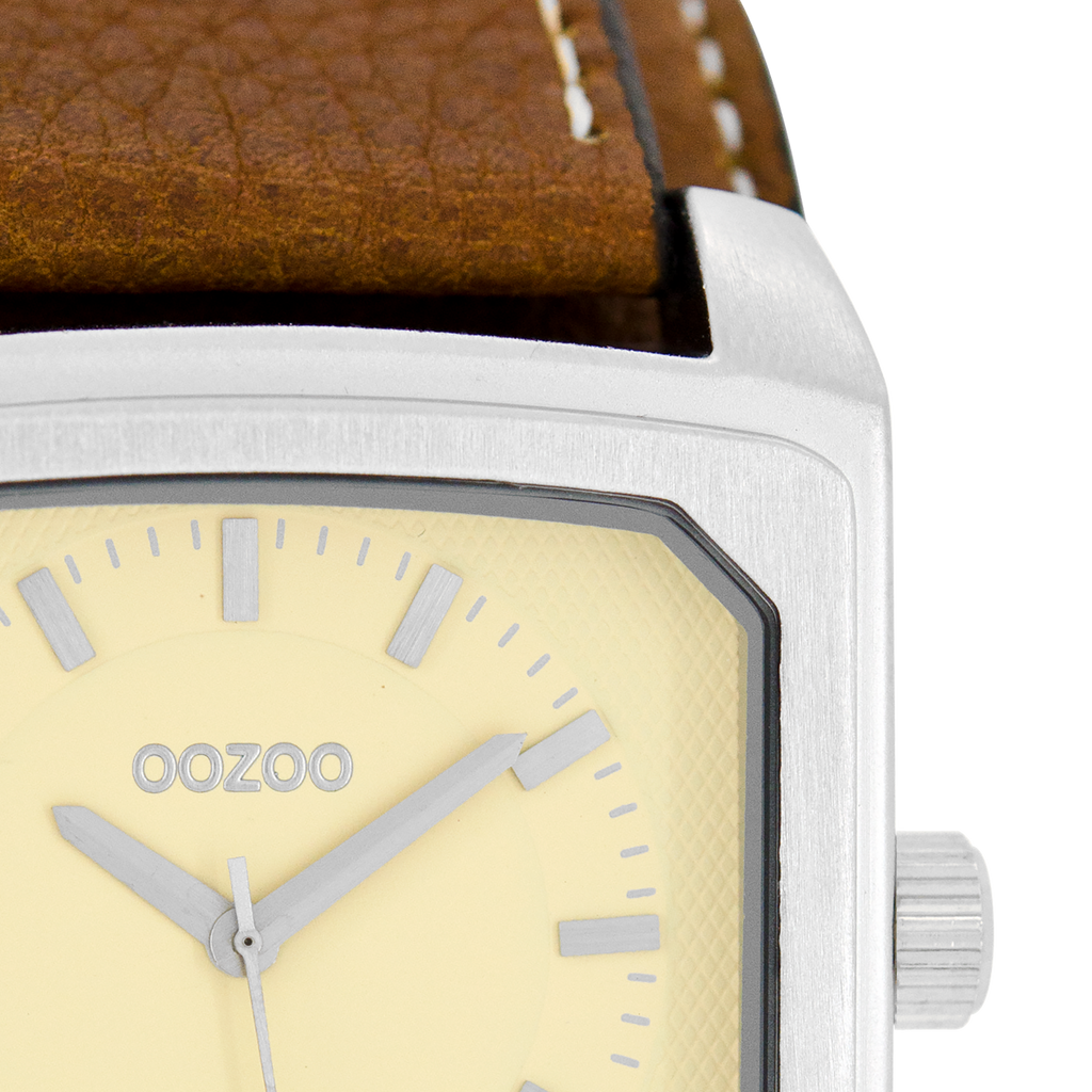 Silver coloured OOZOO watch with cognac leather strap - C5211