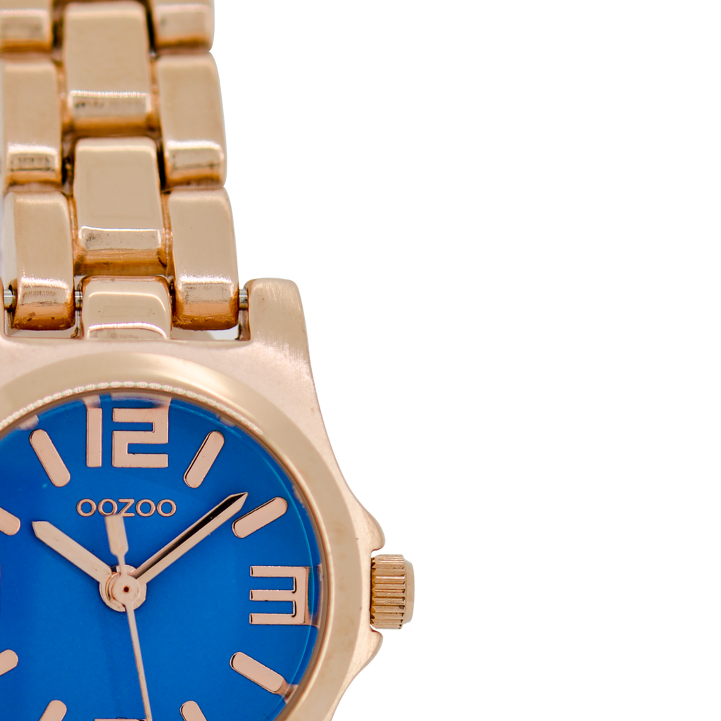 Stand out with this beautiful round ladies design from the trendy OOZOO Timepieces collection. The C5793 has a rose gold coloured stainless steel bracelet and 25 mm rose gold coloured metal watch case. You are making quite the fashion statement with this dark blue dial, rose gold coloured stripes and numbers digits and matching hands. This essential watch for your wardrobe has a mineral glass, stainless steel backplate and is nickel safe. This watch has a 2 Japanese movement and is covered by a 2 year warranty (see section 3 of our Refund, shipping & warranty policy).