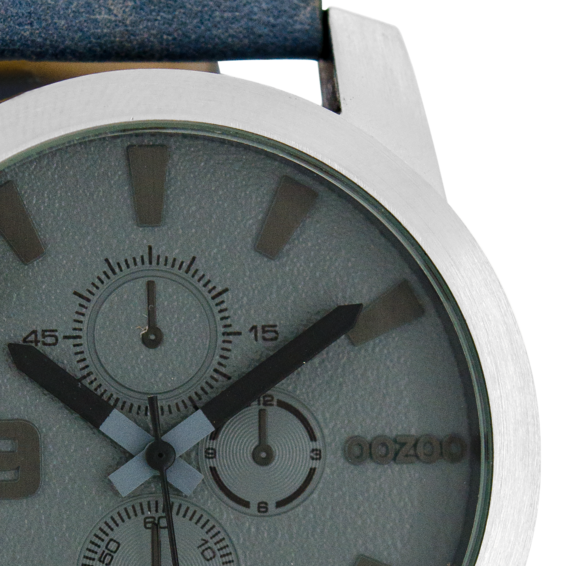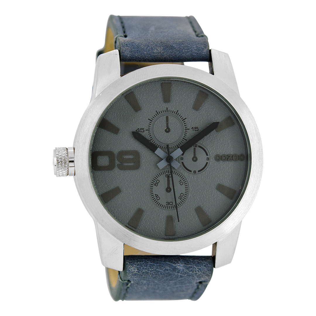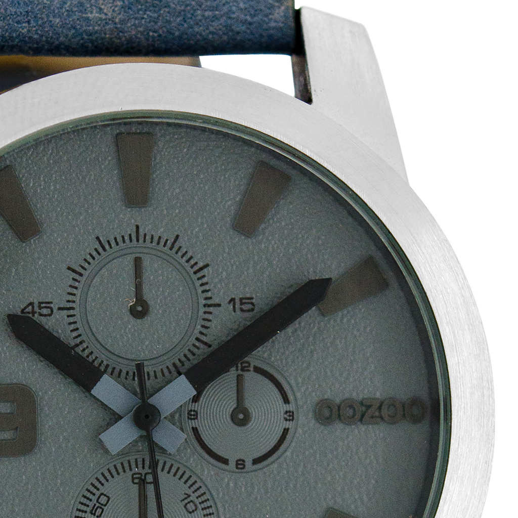 Silver coloured OOZOO watch with blue leather strap - C6101