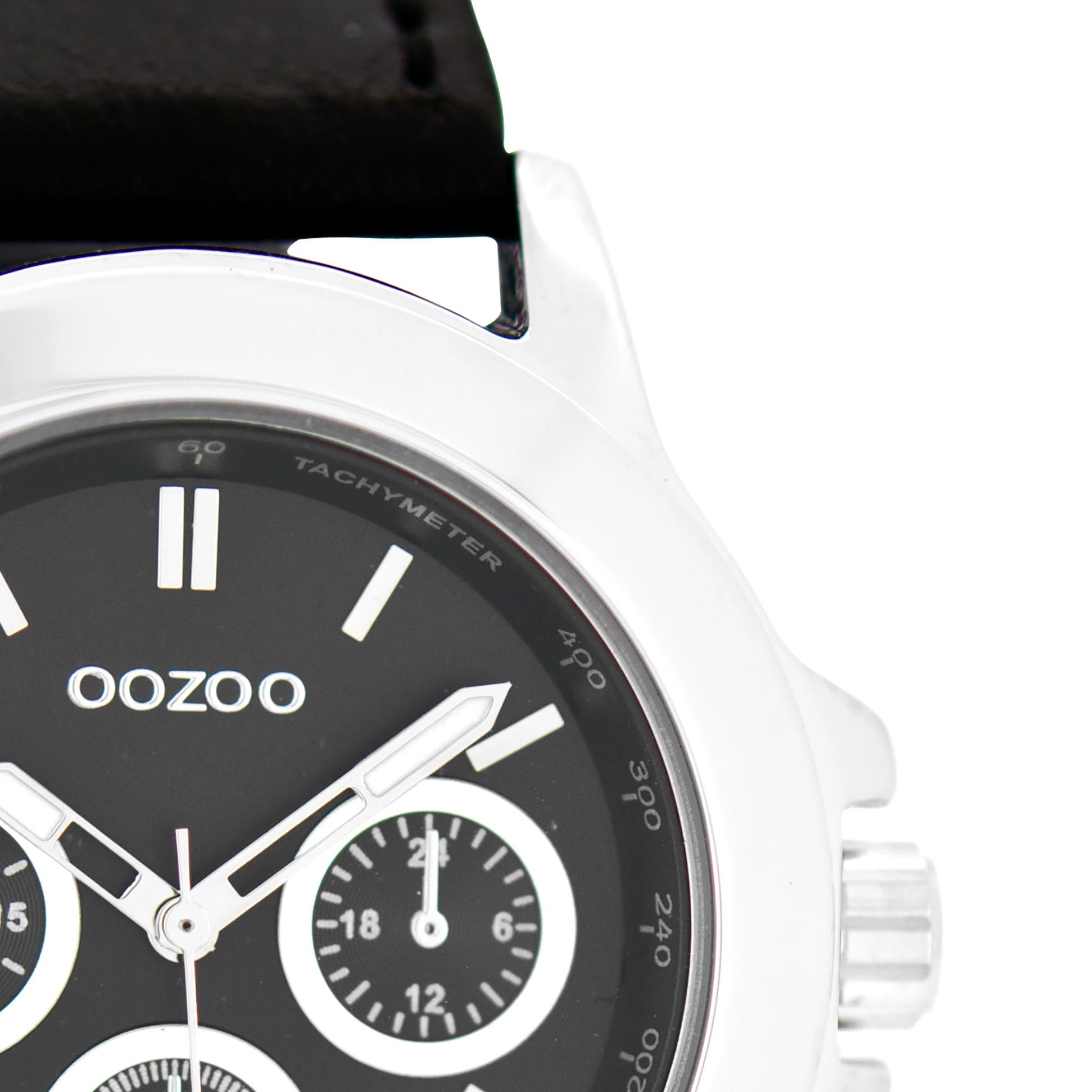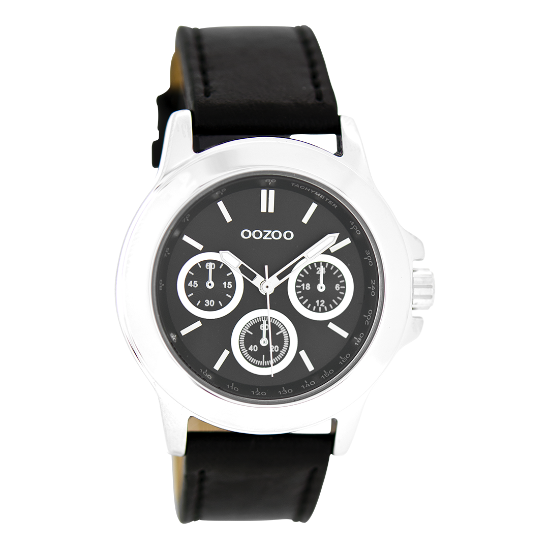 Stand out with this beautiful round ladies design from the trendy OOZOO Timepieces collection. The C6189 has a stitched black leather strap and 40 mm silver coloured metal watch case. You are making quite the fashion statement with this black chrono dial, silver coloured stripes digits and matching hands. This essential watch for your wardrobe has a mineral glass, stainless steel backplate and is nickel safe. This watch has a 2 Japanese movement and is covered by a 2 year warranty (see section 3 of our Refund, shipping & warranty policy).