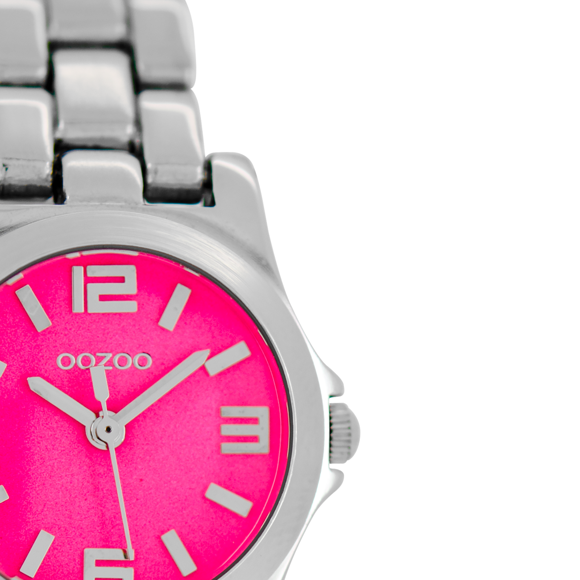 Stand out with this beautiful round ladies design from the trendy OOZOO Timepieces collection. The C6220 has a silver coloured stainless steel bracelet and 25 mm silver coloured metal watch case. You are making quite the fashion statement with this fluo pink dial, silver coloured stripes and numbers digits and matching hands. This essential watch for your wardrobe has a mineral glass, stainless steel backplate and is nickel safe. This watch has a 2 Japanese movement and is covered by a 2 year warranty (see section 3 of our Refund, shipping & warranty policy).