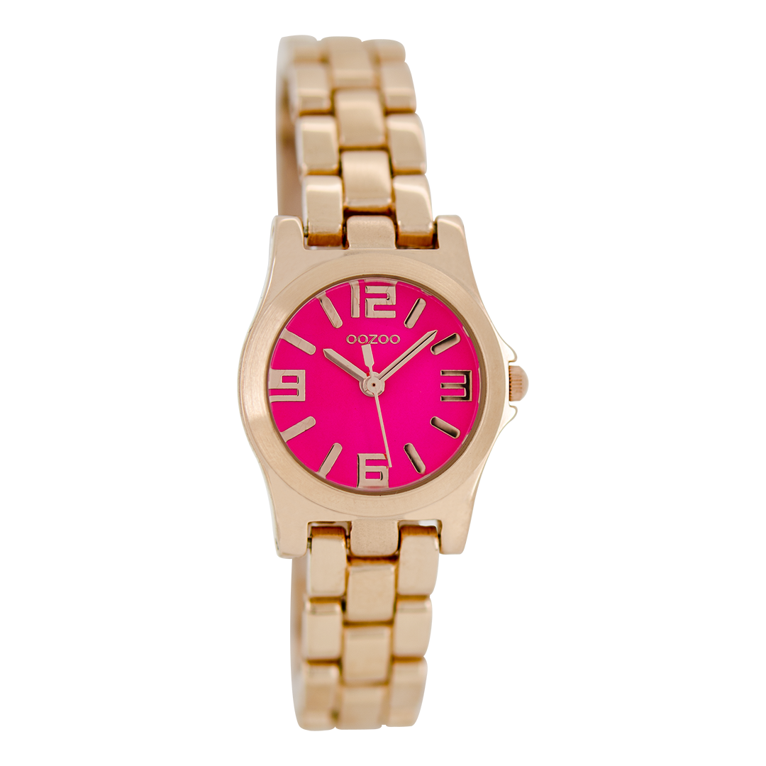 Stand out with this beautiful round ladies design from the trendy OOZOO Timepieces collection. The C6223 has a rose gold coloured stainless steel bracelet and 25 mm rose gold coloured metal watch case. You are making quite the fashion statement with this fluo pink dial, rose gold coloured stripes and numbers digits and matching hands. This essential watch for your wardrobe has a mineral glass, stainless steel backplate and is nickel safe. This watch has a 2 Japanese movement and is covered by a 2 year warranty (see section 3 of our Refund, shipping & warranty policy).