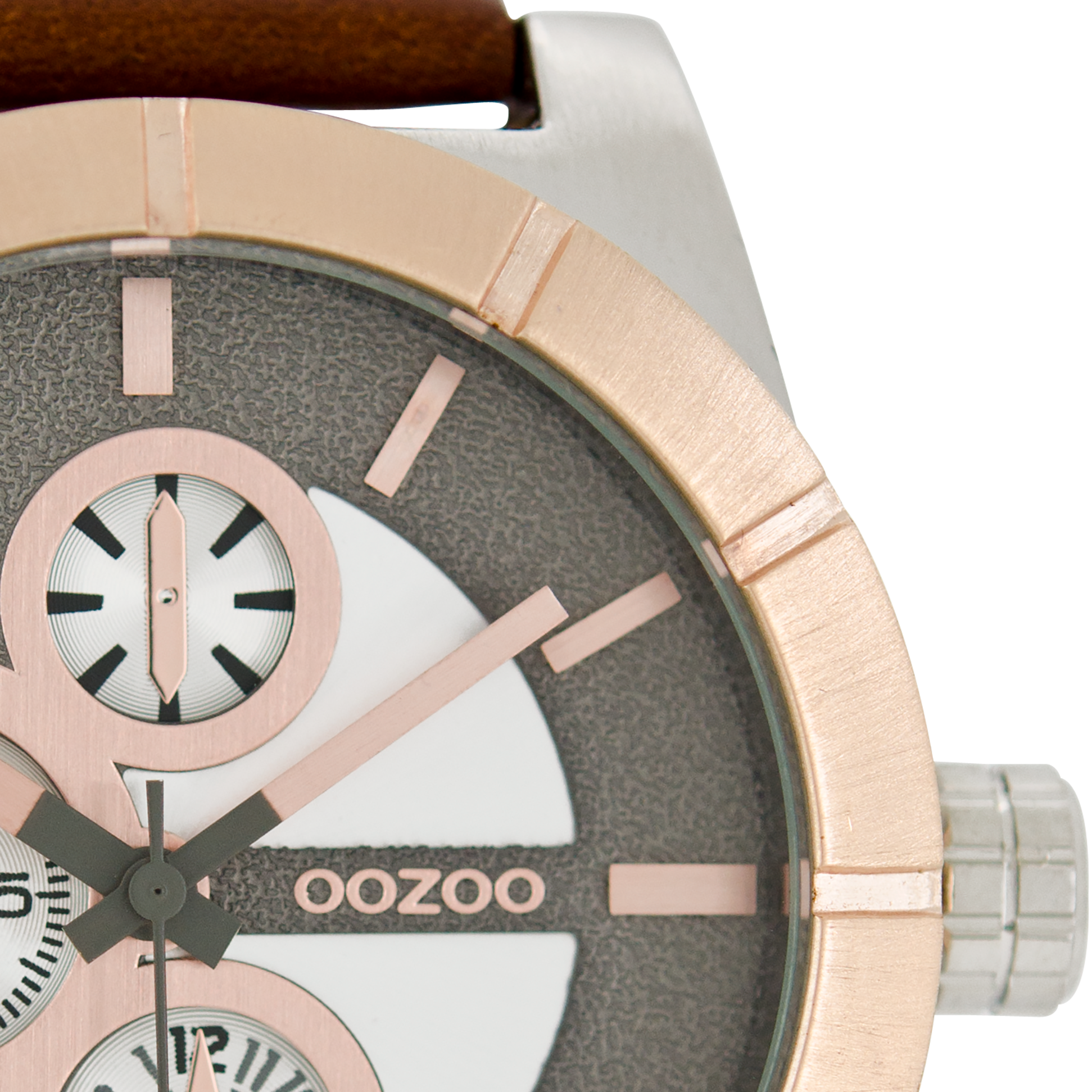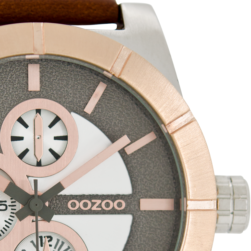 Stand out with this beautiful round gents design from the trendy OOZOO Timepieces collection. The C6432 has a brown leather strap and 47 mm silver coloured metal watch case. You are making quite the fashion statement with this grey chrono dial, rose gold coloured stripes digits and matching hands. This essential watch for your wardrobe has a mineral glass, stainless steel backplate and is nickel safe. This watch has a 2 Japanese movement and is covered by a 2 year warranty (see section 3 of our Refund, shipping & warranty policy).