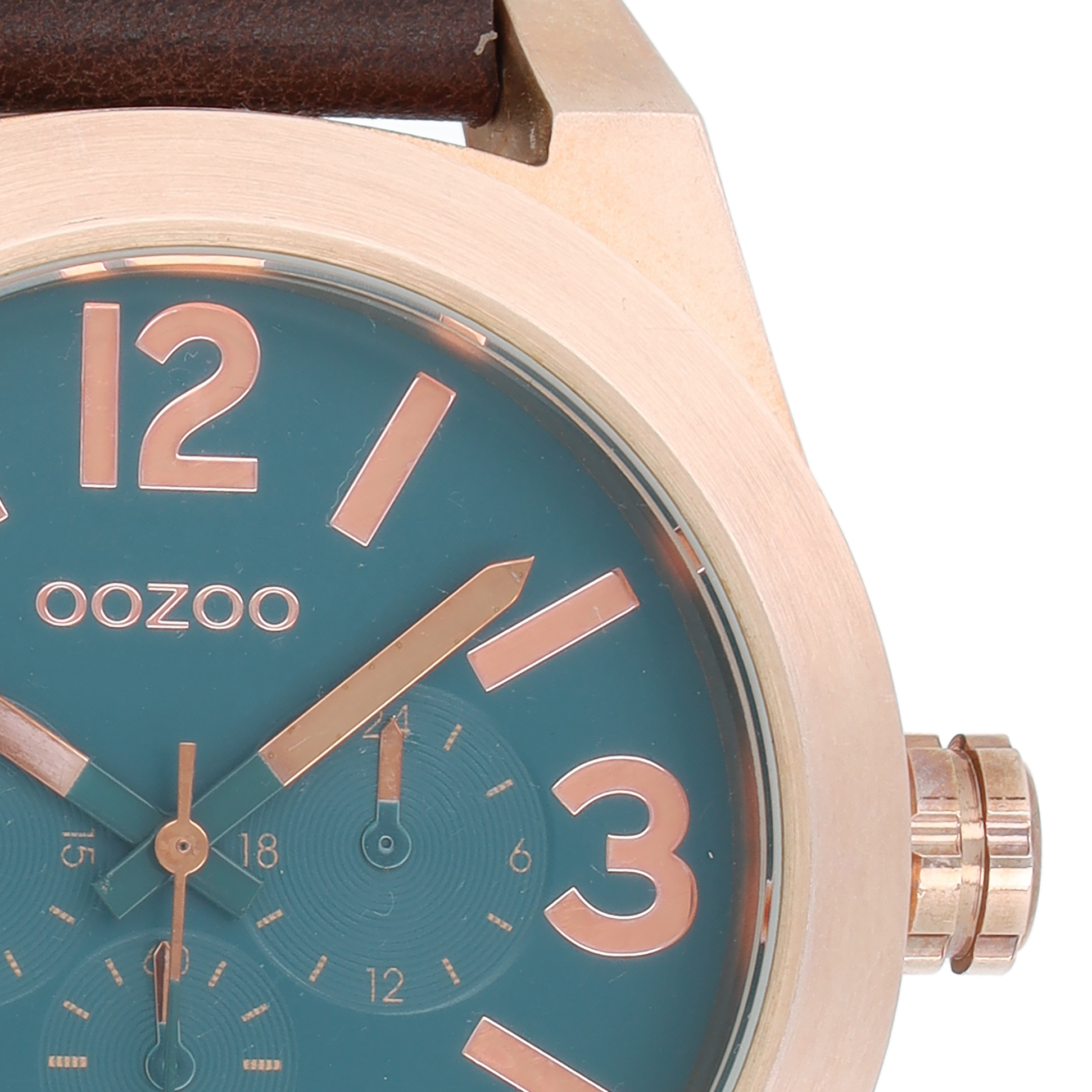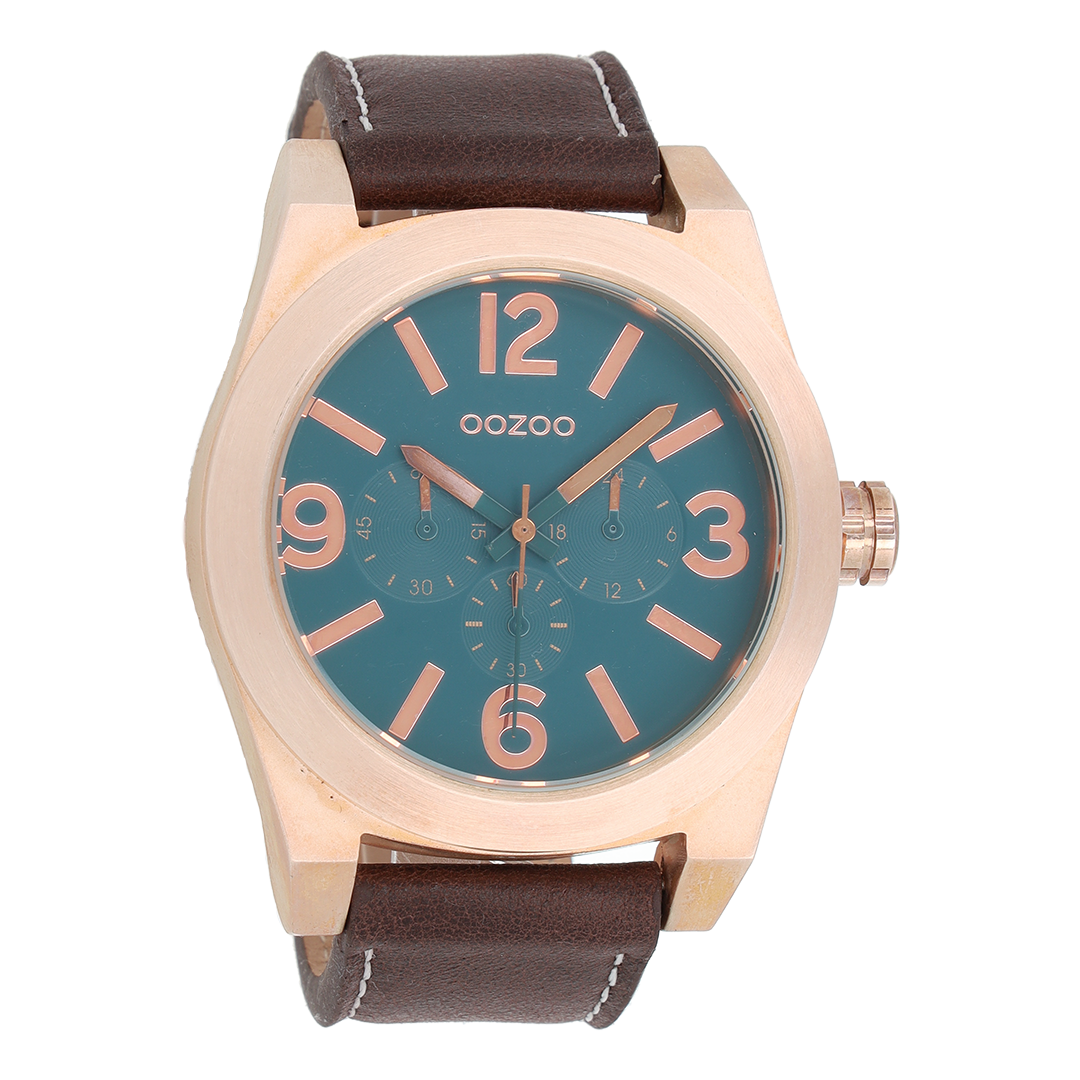 Rose gold coloured OOZOO watch with dark brown leather strap - C6733