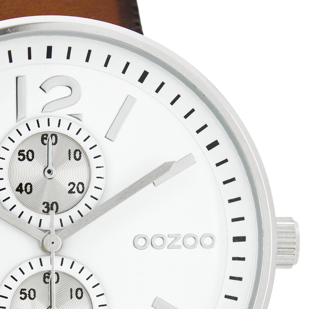 Silver coloured OOZOO watch with cognac leather strap - C7076