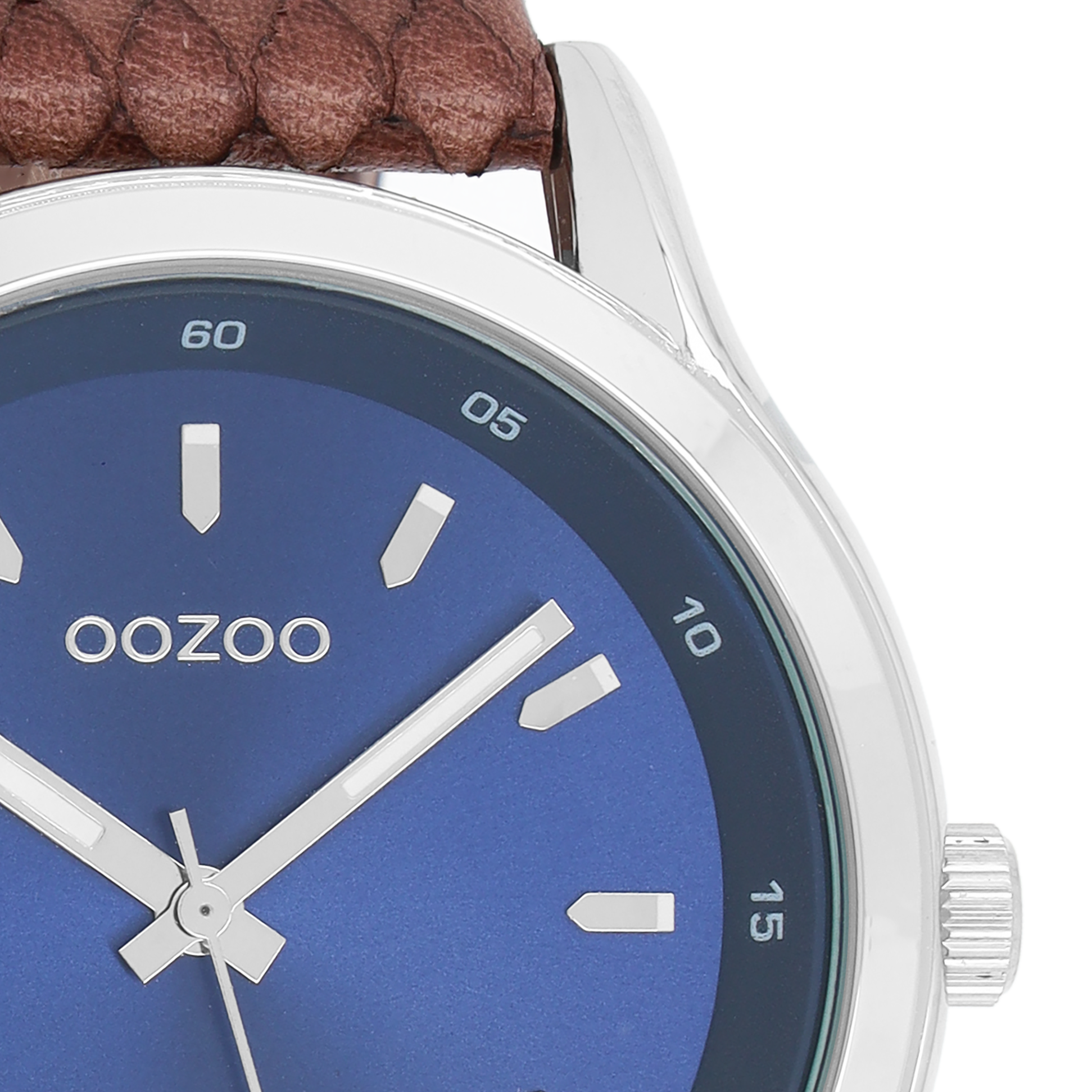 Silver coloured OOZOO watch with brown leather strap - C7432