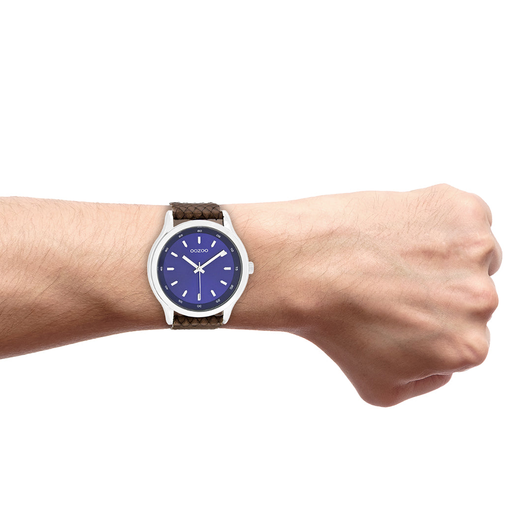 Stand out with this beautiful round gents design from the trendy OOZOO Timepieces collection. The C7432 has a snake brown leather strap and 50 mm silver coloured metal watch case. You are making quite the fashion statement with this dark blue dial, silver coloured stripes digits and silver coloured/white hands. This essential watch for your wardrobe has a mineral glass, stainless steel backplate and is nickel safe. This watch has a 2 Japanese movement and is covered by a 2 year warranty (see section 3 of our Refund, shipping & warranty policy).