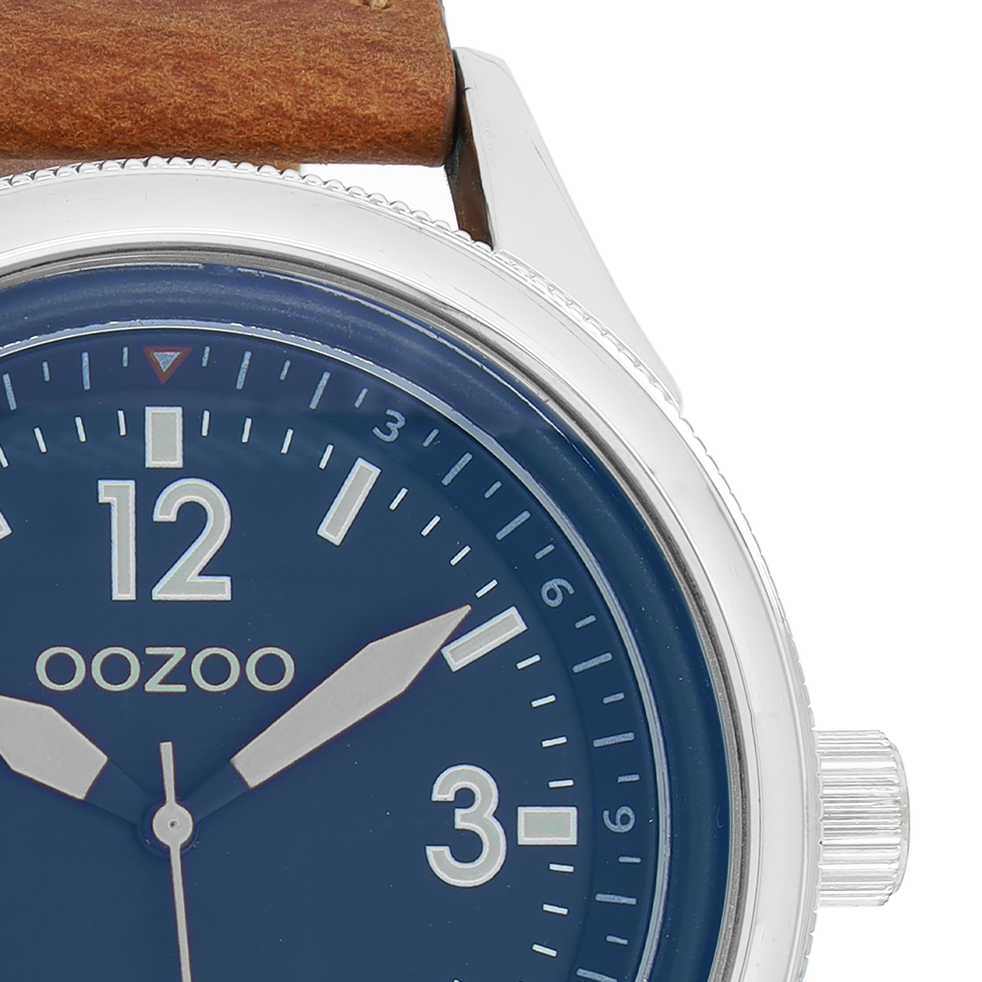 Silver coloured OOZOO watch with camel leather strap - C7476