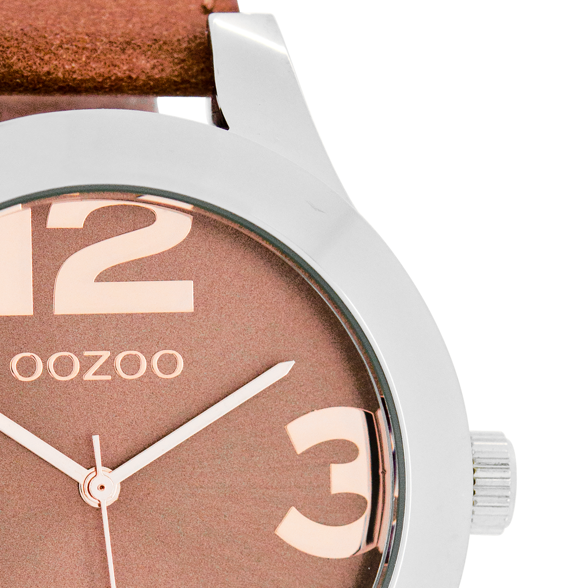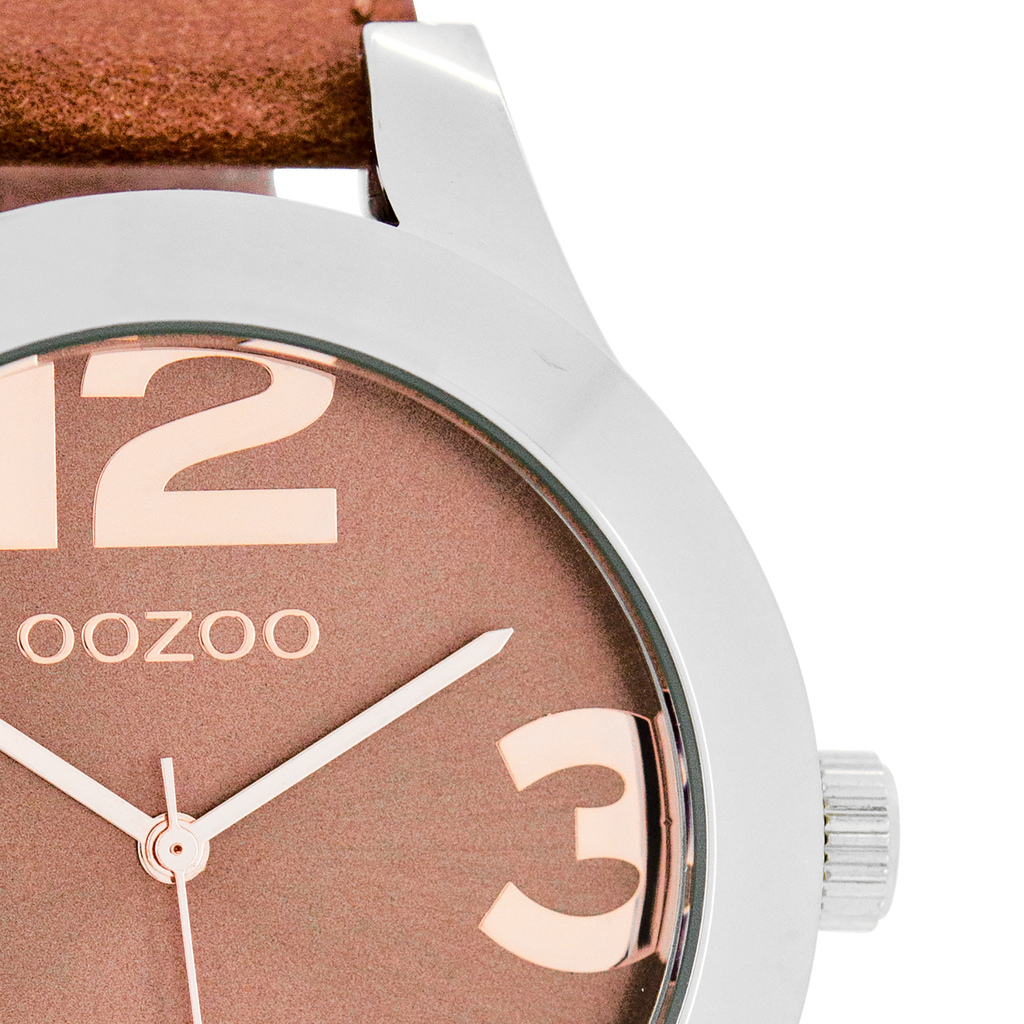 Silver coloured OOZOO watch with dusty orange leather strap - C7591