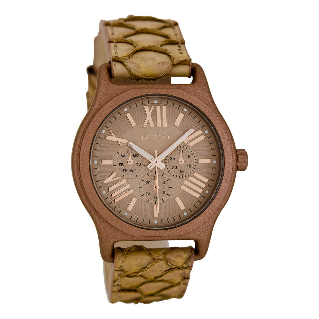 Stand out with this beautiful round ladies design from the trendy OOZOO Timepieces collection. The C7610 has a snake pink grey leather strap and 40x37 mm rose gold coloured matte watch case. You are making quite the fashion statement with this pink grey chrono dial, rose gold coloured Roman numerals digits and rose gold coloured/white hands. This essential watch for your wardrobe has a mineral glass, stainless steel backplate and is nickel safe. This watch has a 2 Japanese movement and is covered by a 2 year warranty (see section 3 of our Refund, shipping & warranty policy).