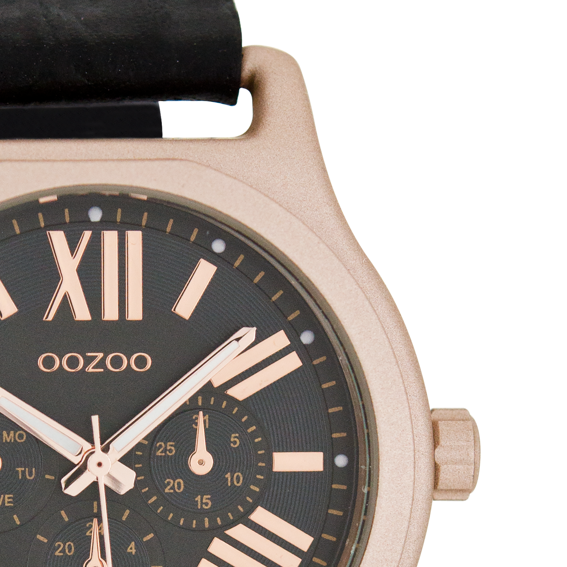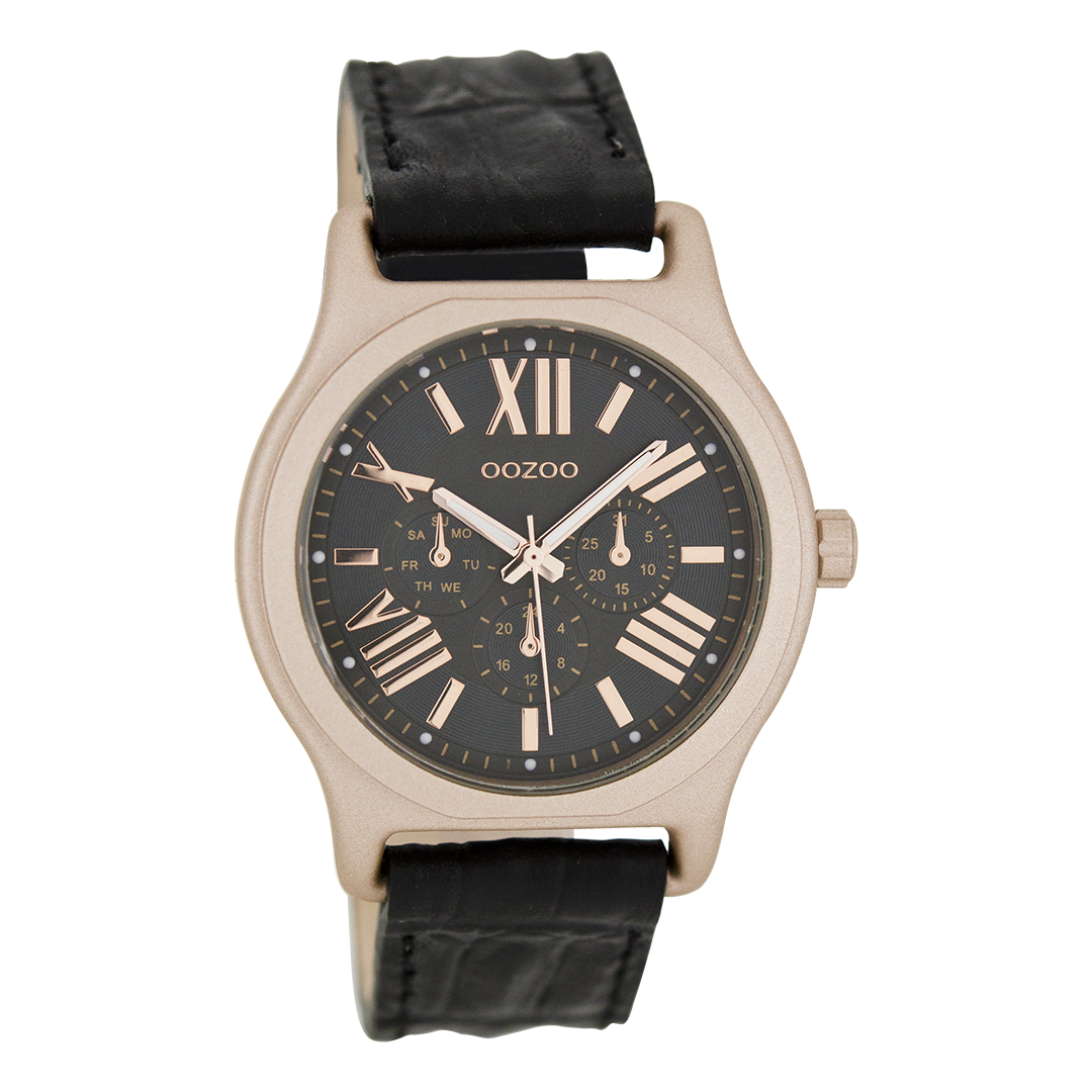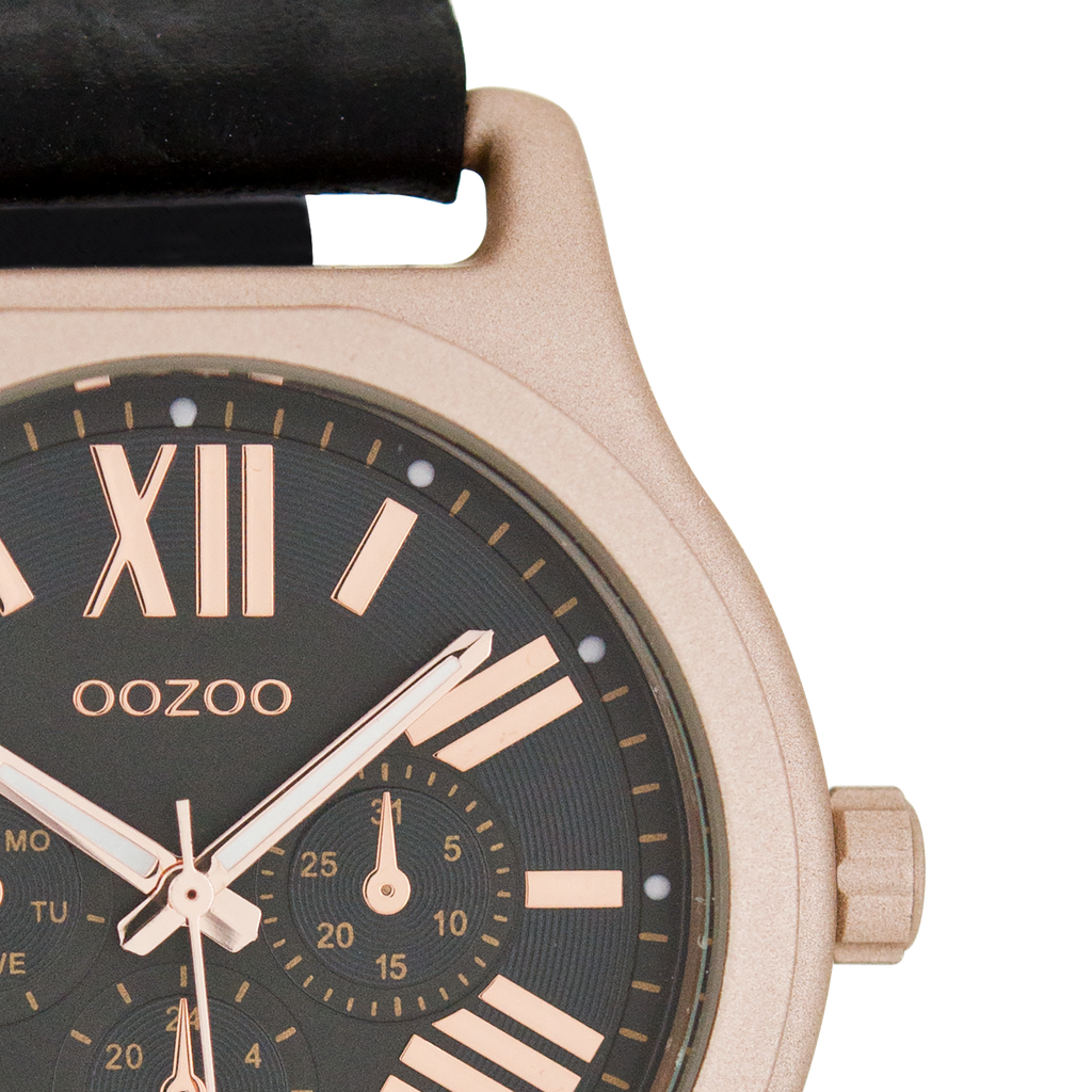 Rose gold coloured OOZOO watch with black leather strap - C7614