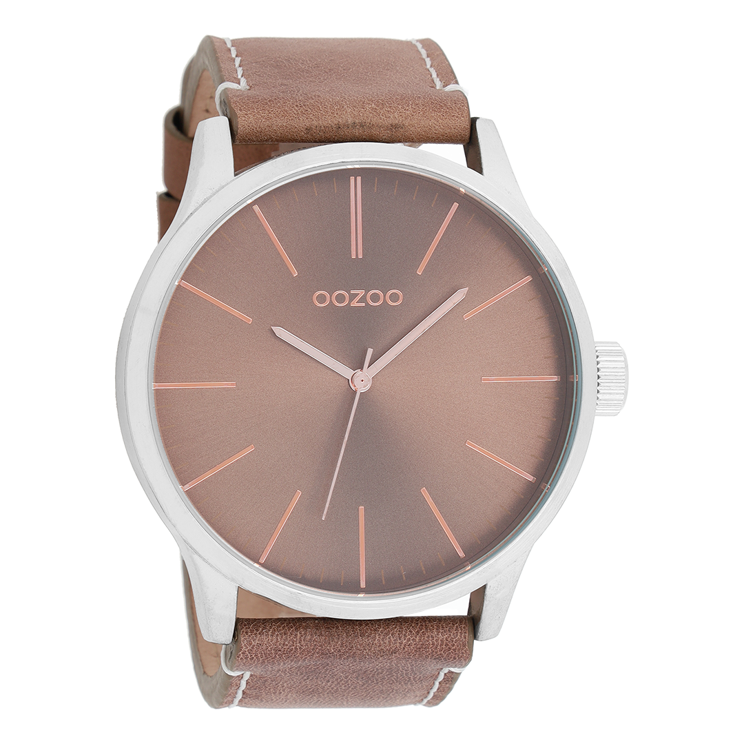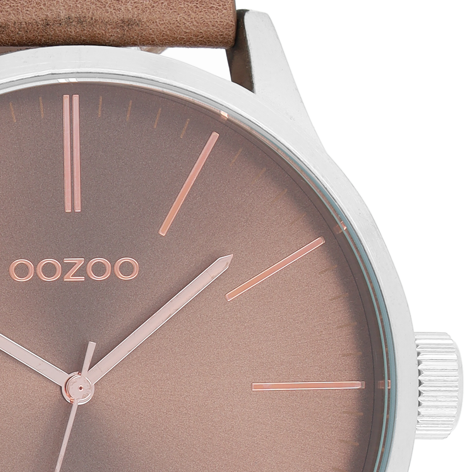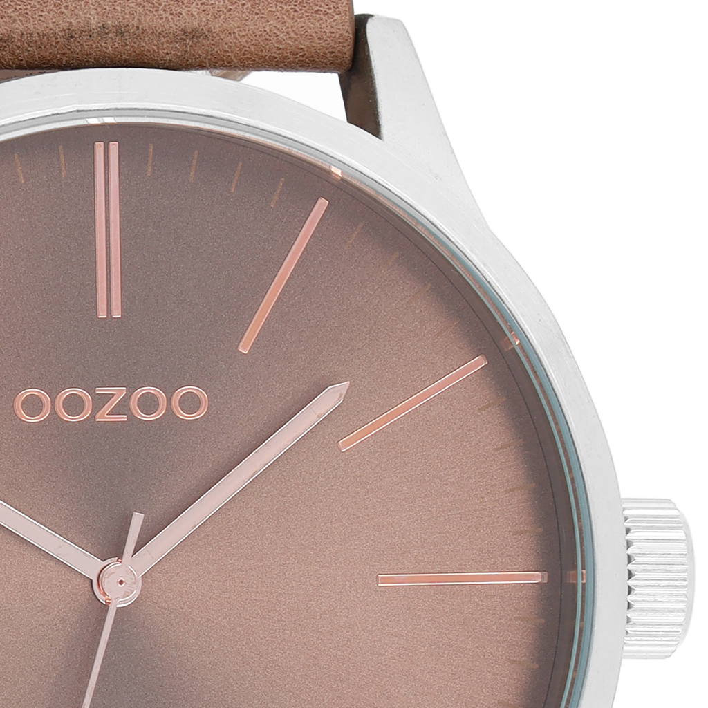 Silver coloured OOZOO watch with brown leather strap - C7818