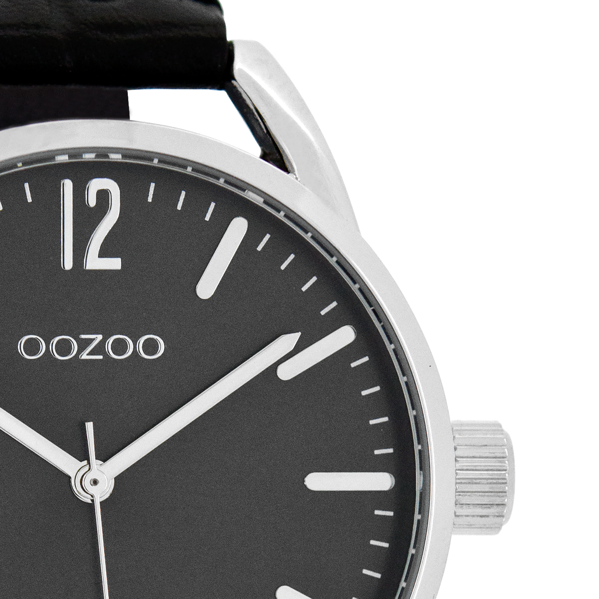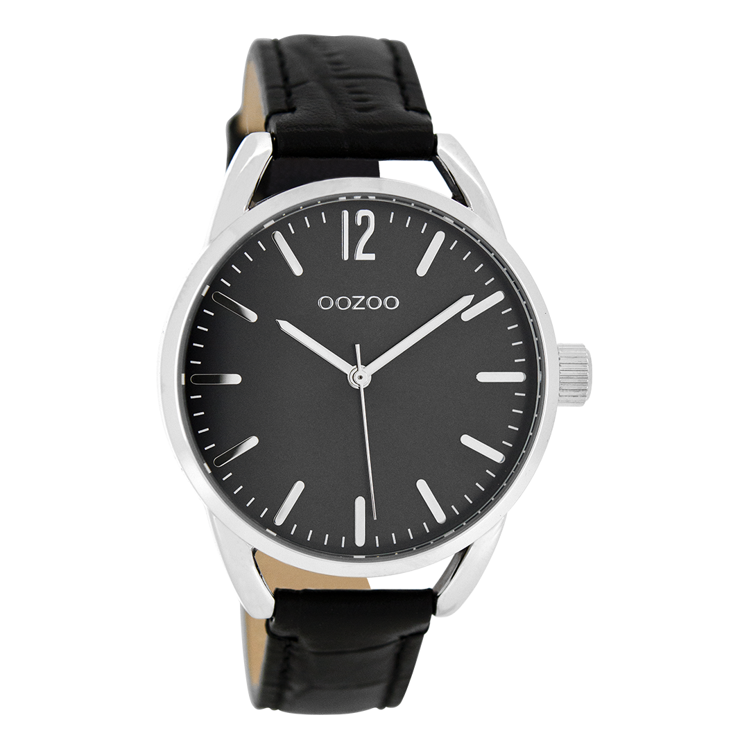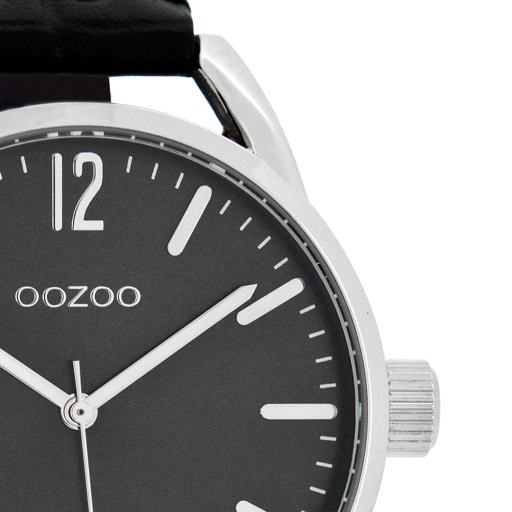 Silver coloured OOZOO watch with black leather strap - C8339