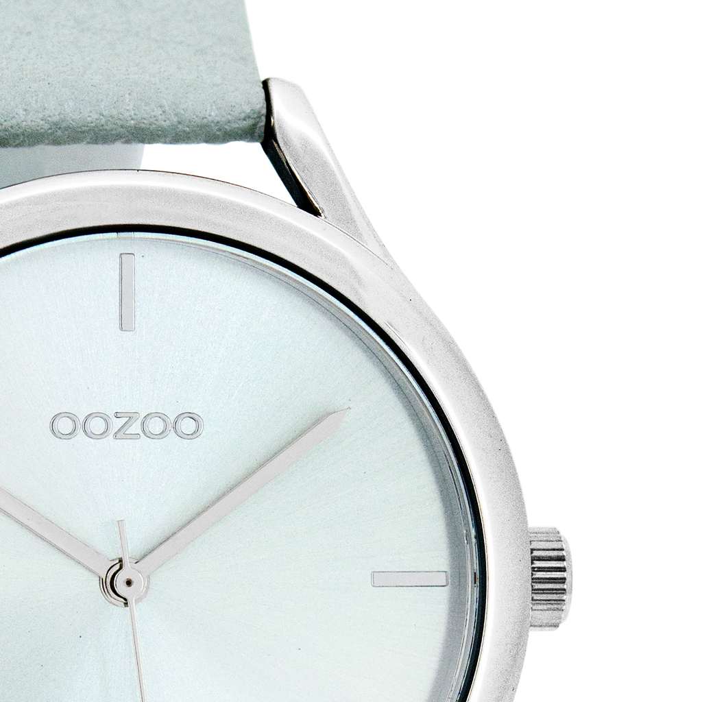 Silver coloured OOZOO watch with light blue leather strap - C8346
