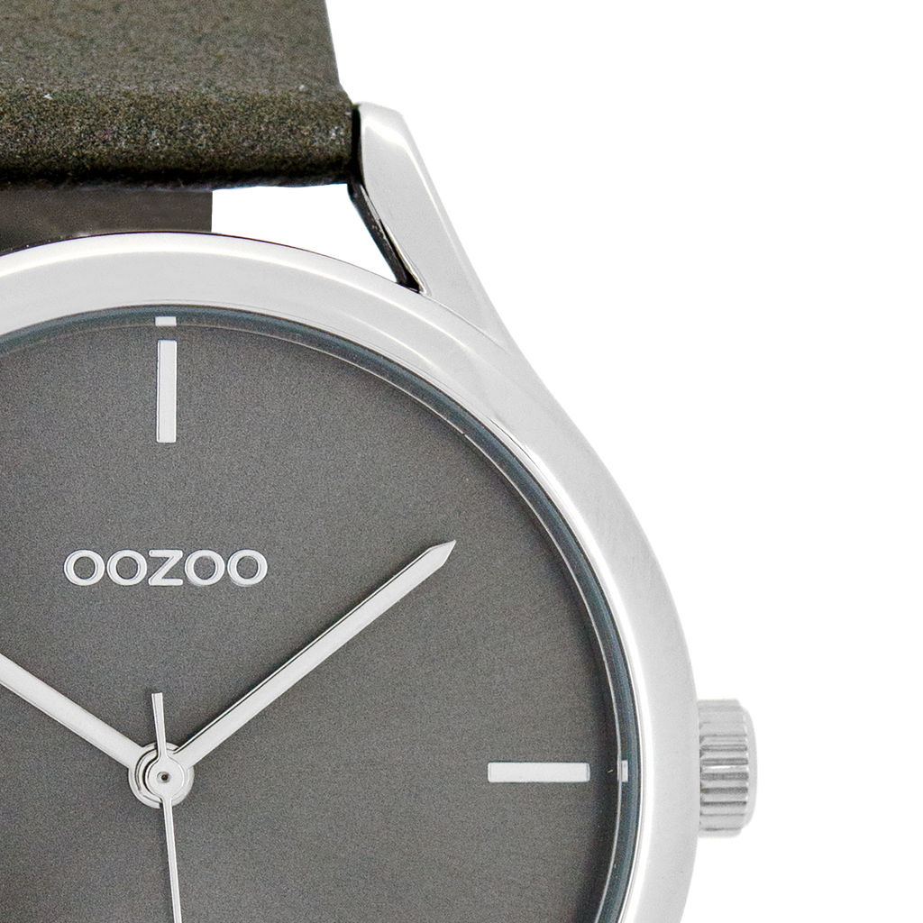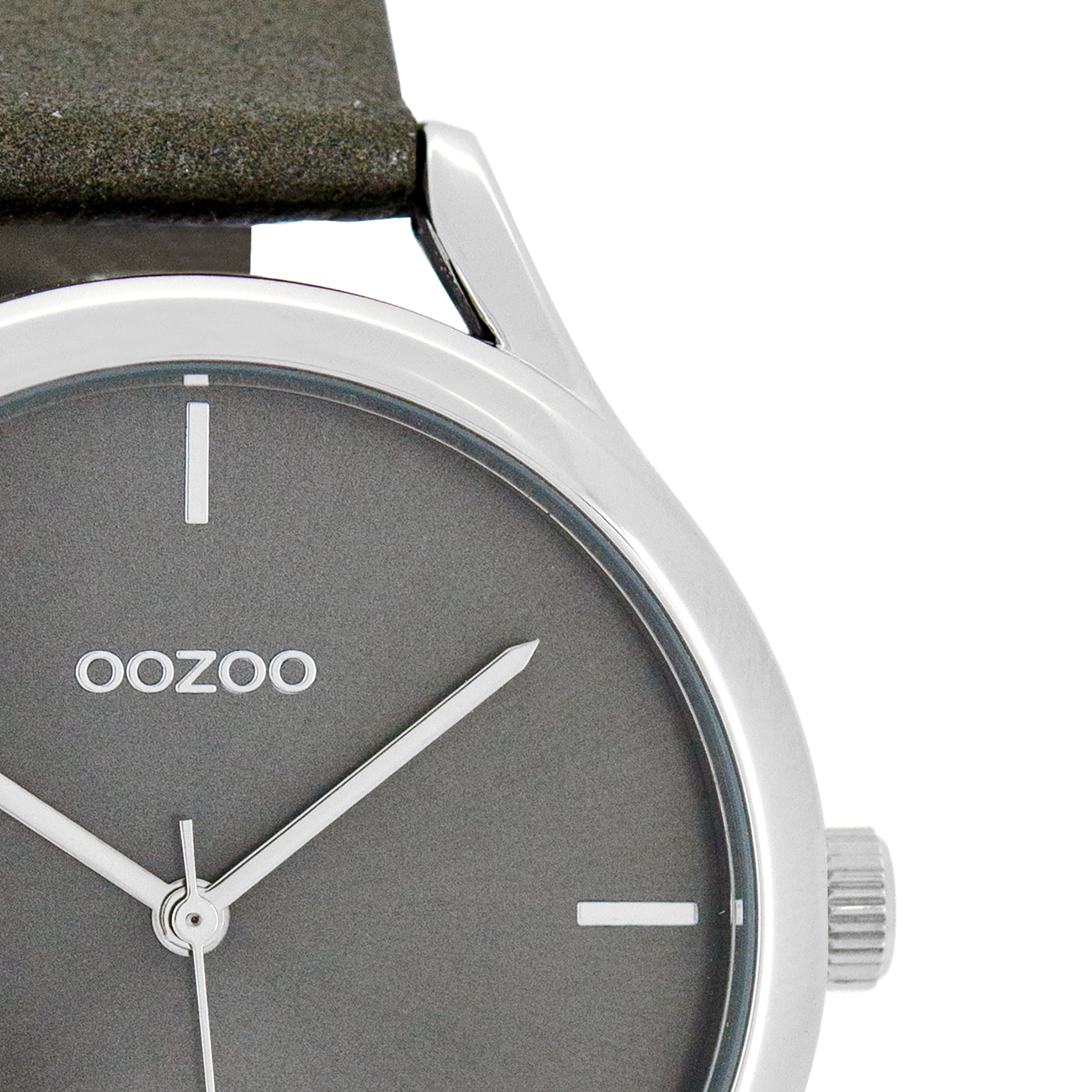 Silver coloured OOZOO watch with grey leather strap - C8348