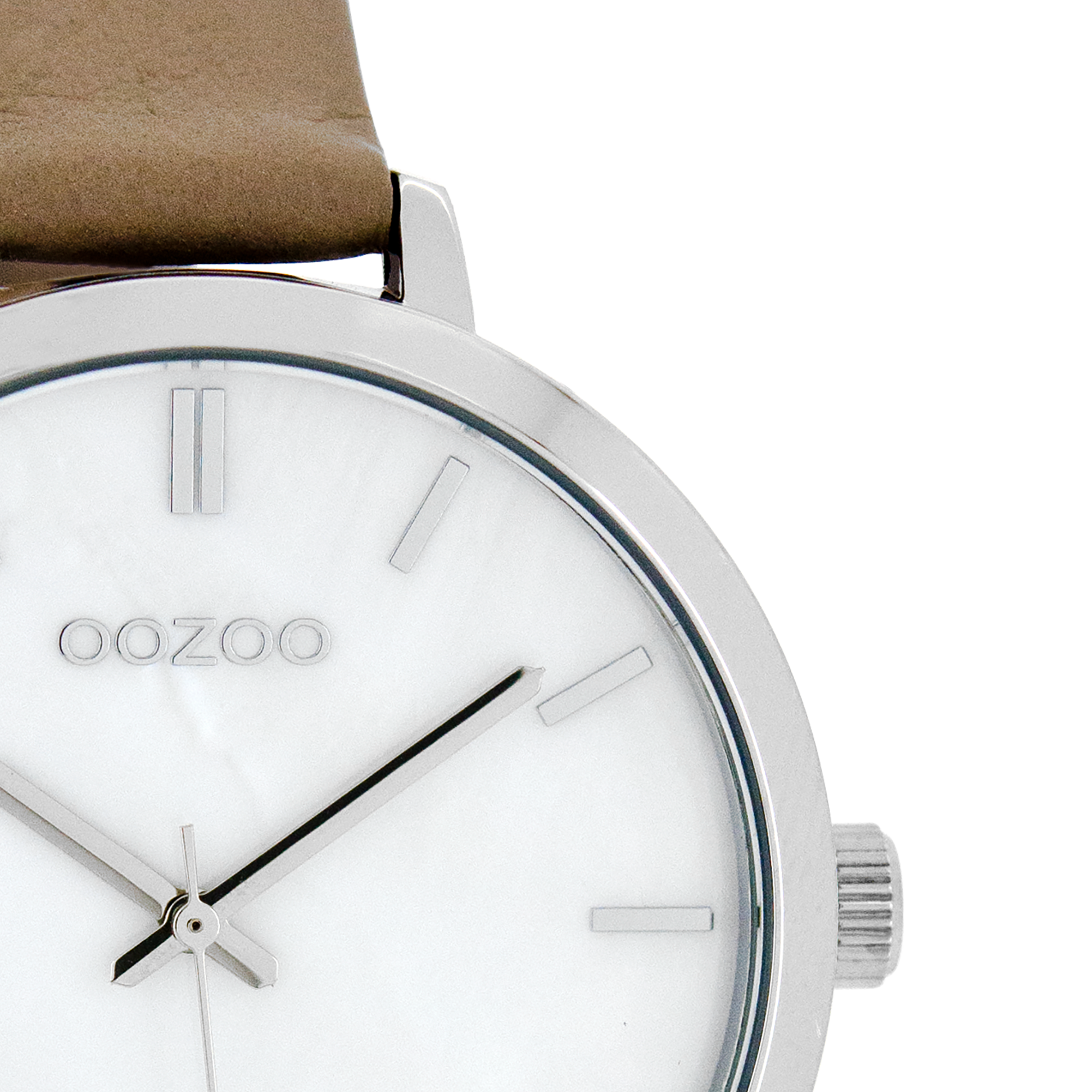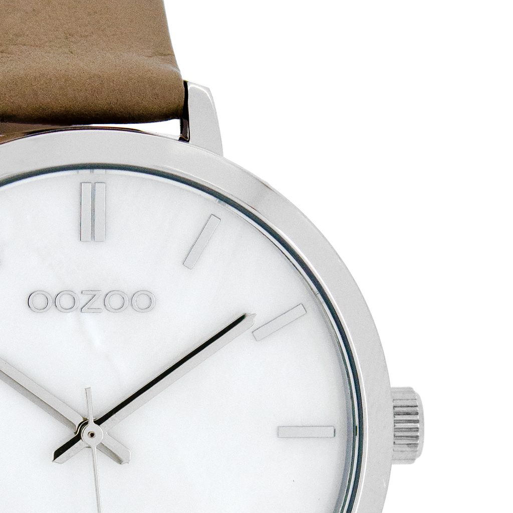 Silver coloured OOZOO watch with taupe leather strap - C8357