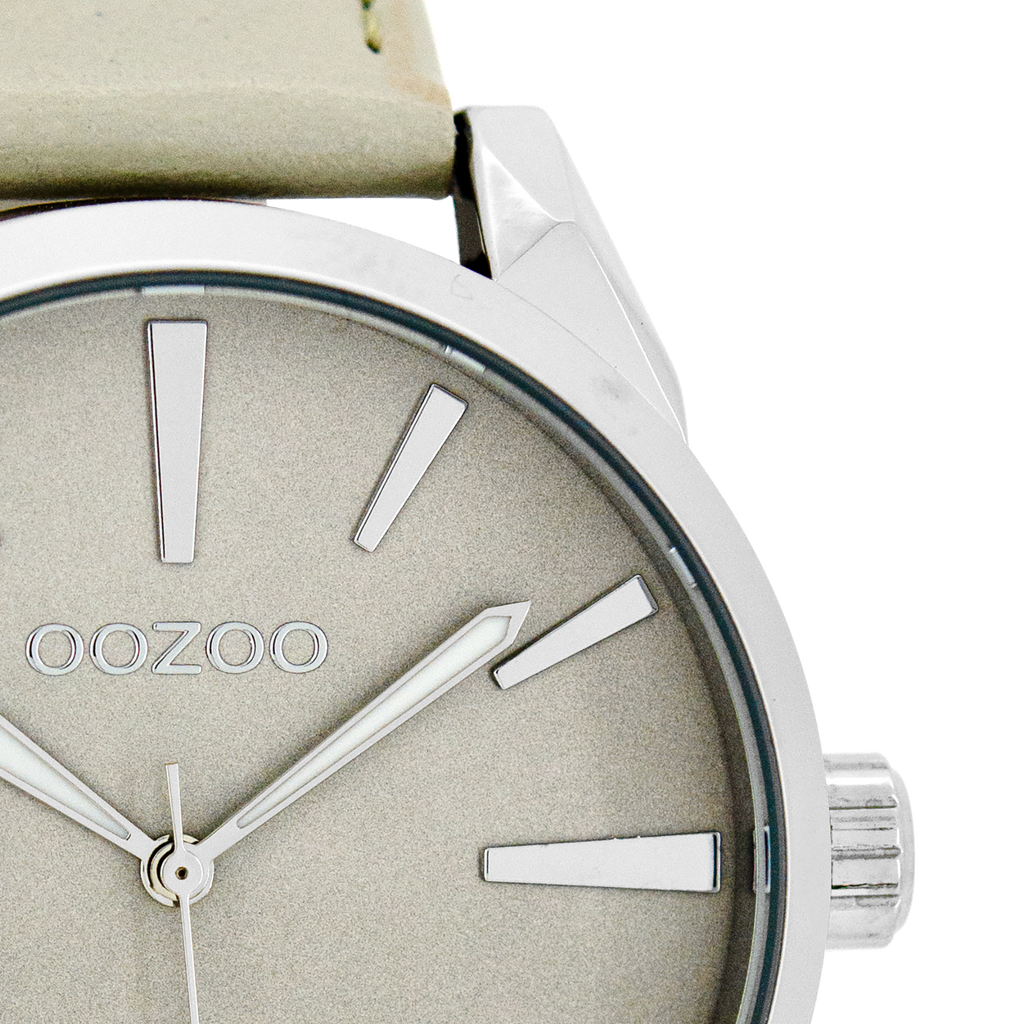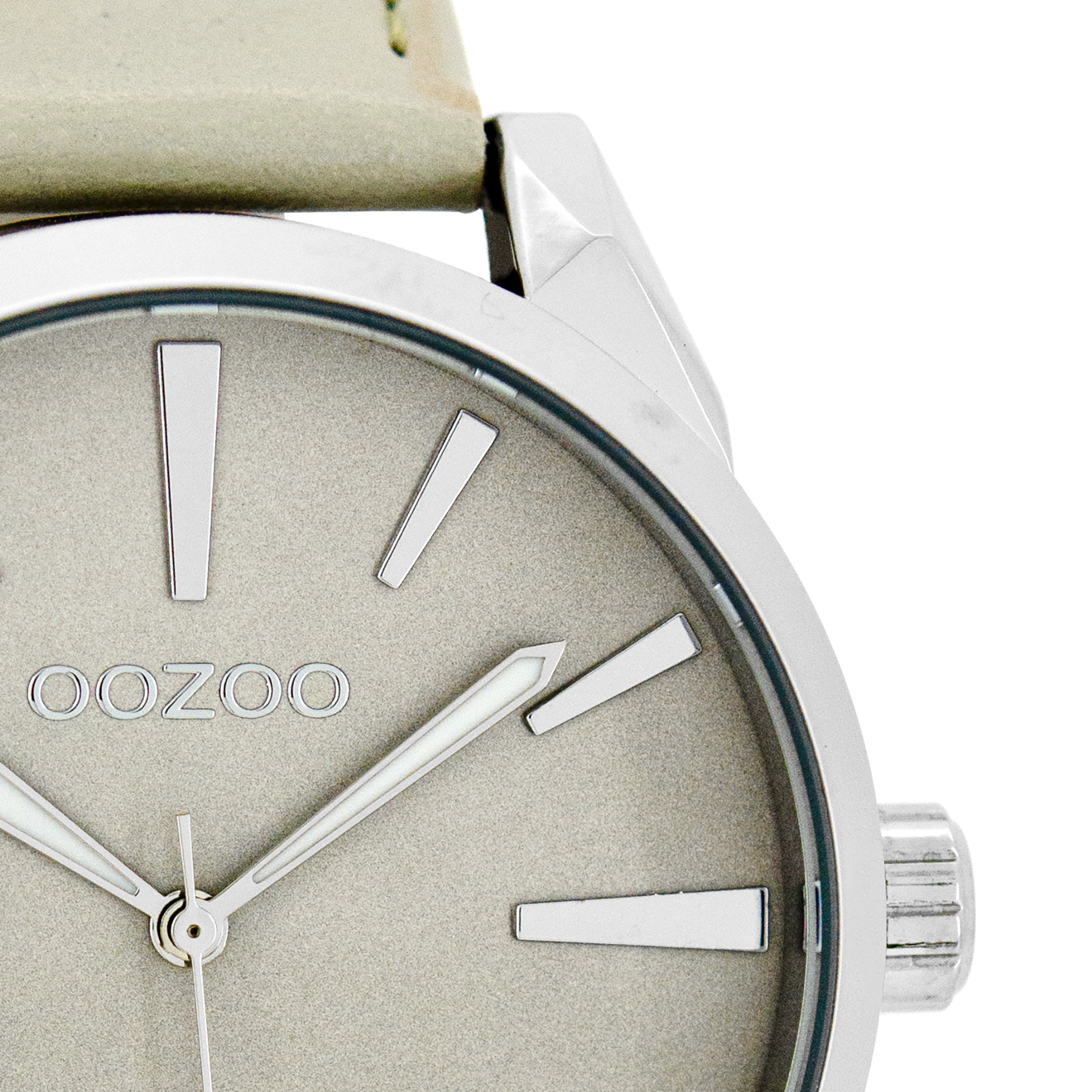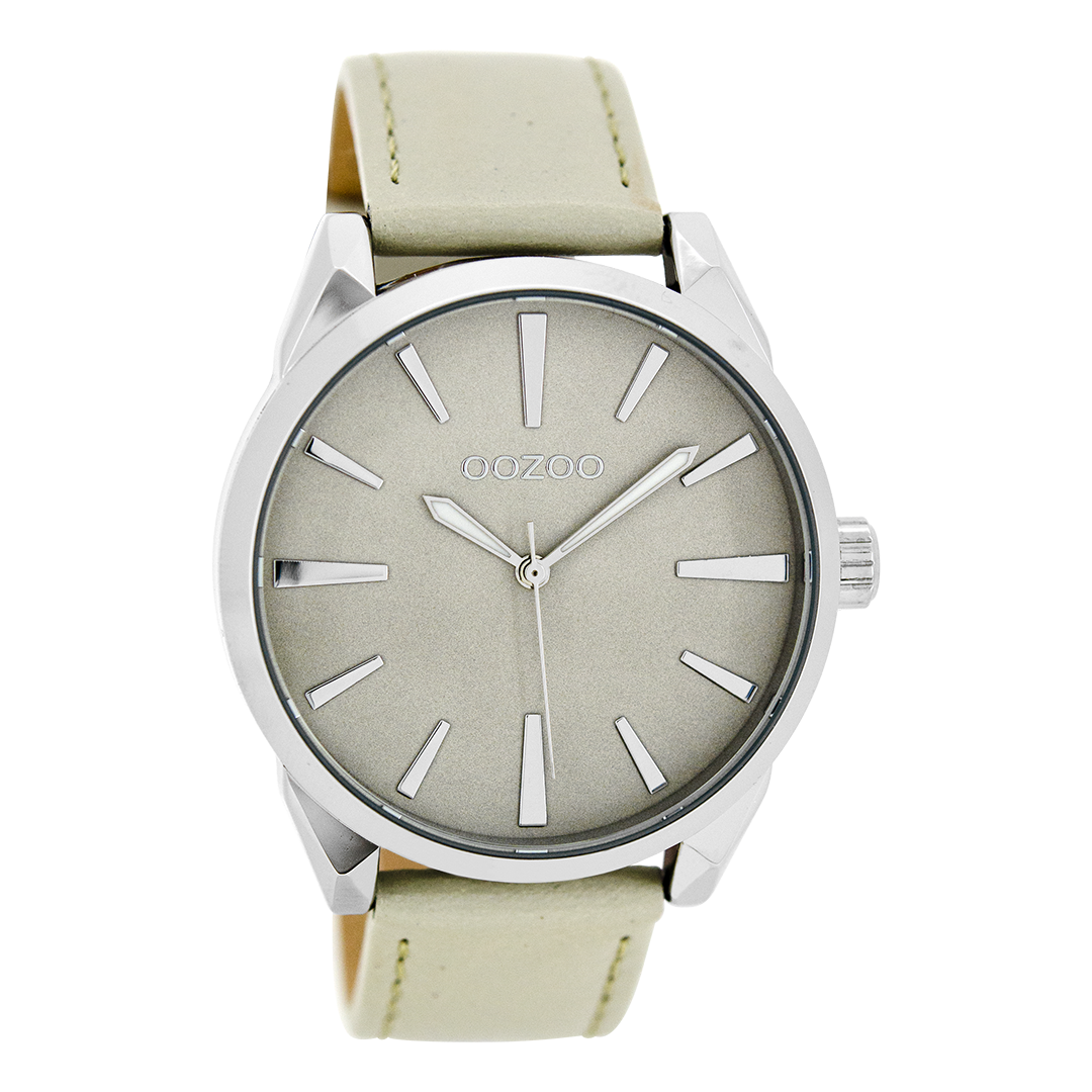 Silver coloured OOZOO watch with grey leather strap - C8360