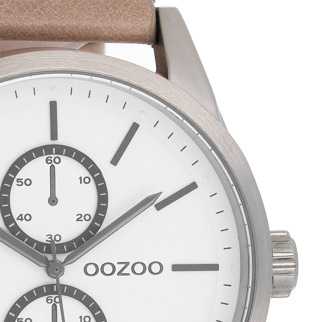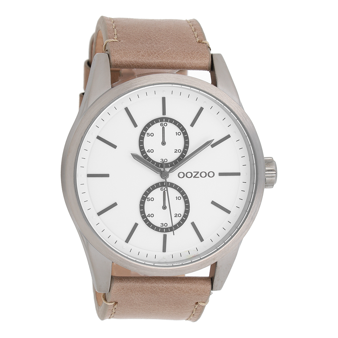 Stand out with this beautiful round gents design from the trendy OOZOO Timepieces collection. The C8511 has a grey leather strap and 50 mm titanium metal watch case. You are making quite the fashion statement with this white chrono dial, titanium stripes digits and matching hands. This essential watch for your wardrobe has a mineral glass, stainless steel backplate and is nickel safe. This watch has a 2 Japanese movement and is covered by a 2 year warranty (see section 3 of our Refund, shipping & warranty policy).
