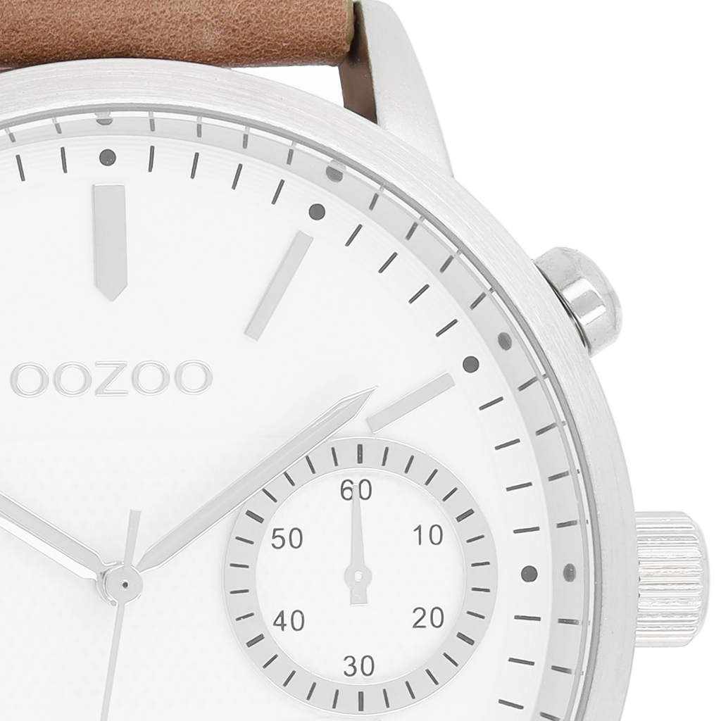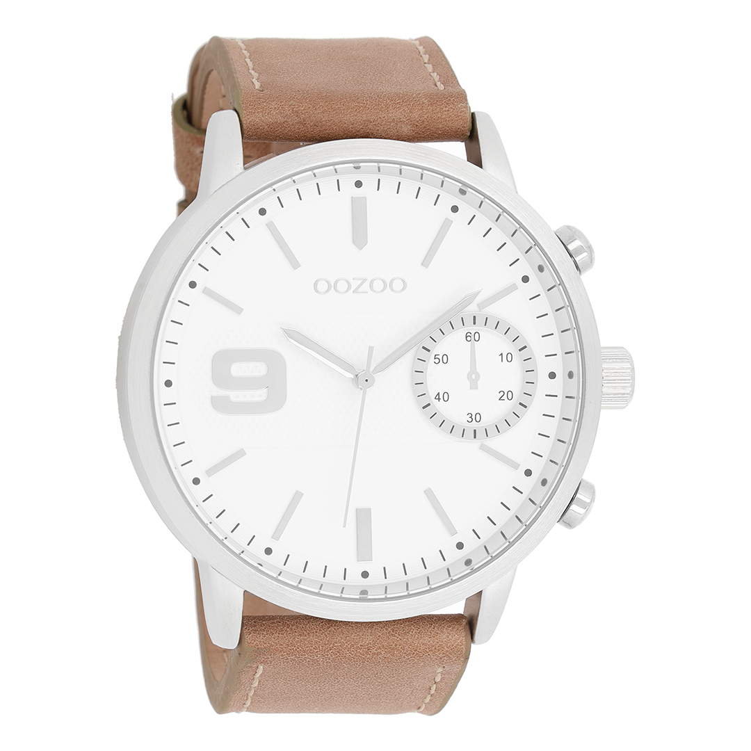 Stand out with this beautiful round gents design from the trendy OOZOO Timepieces collection. The C8580 has a brown leather strap and 48 mm silver coloured metal watch case. You are making quite the fashion statement with this white dial, silver coloured stripes and numbers digits and matching hands. This essential watch for your wardrobe has a mineral glass, stainless steel backplate and is nickel safe. This watch has a 2 Japanese movement and is covered by a 2 year warranty (see section 3 of our Refund, shipping & warranty policy).