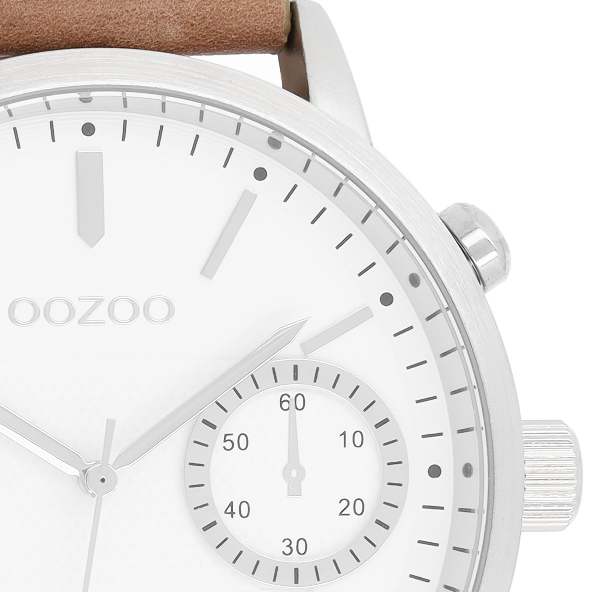Silver coloured OOZOO watch with brown leather strap - C8580