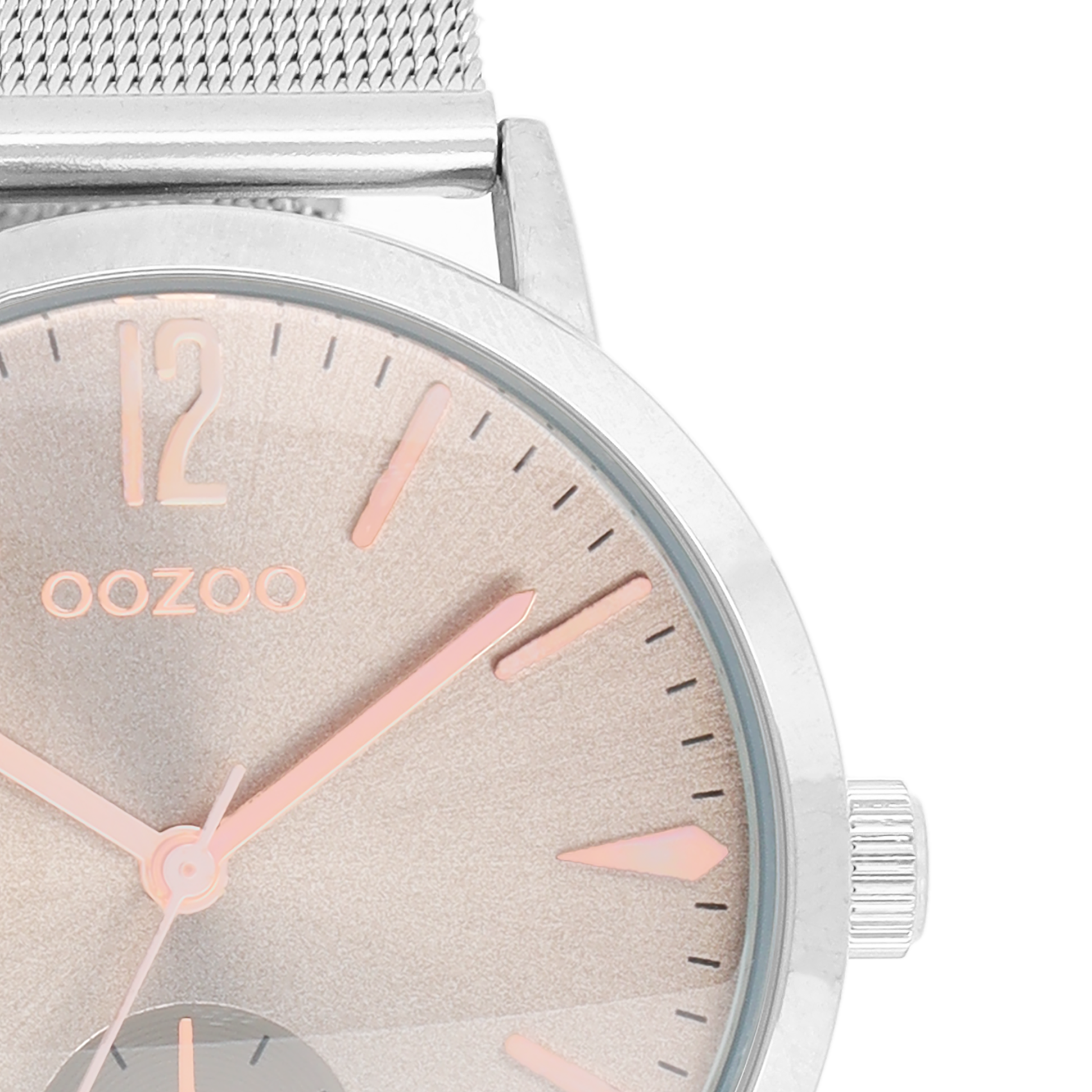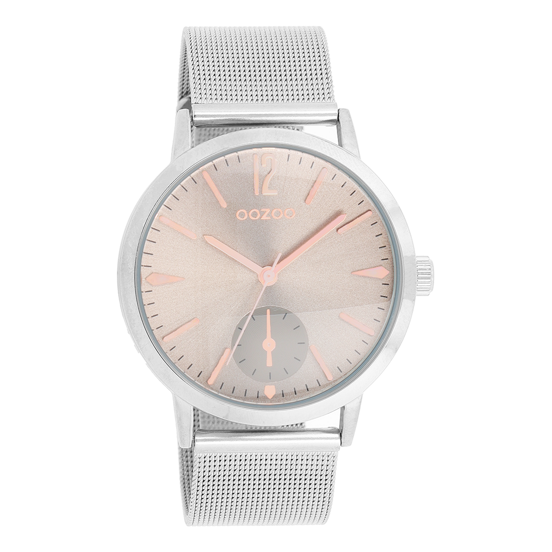 Silver coloured OOZOO watch with metal mesh bracelet - C8612