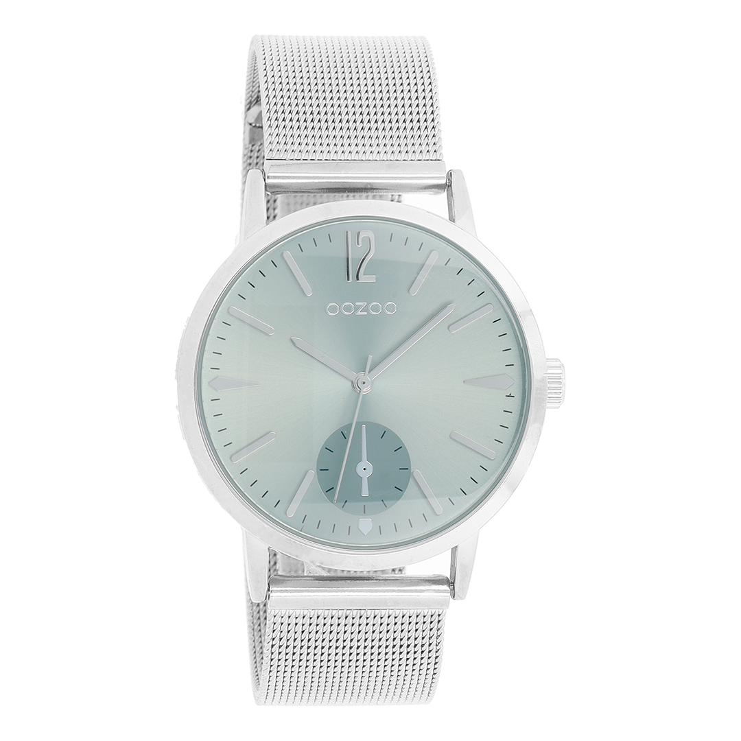 Silver coloured OOZOO watch with metal mesh bracelet - C8616