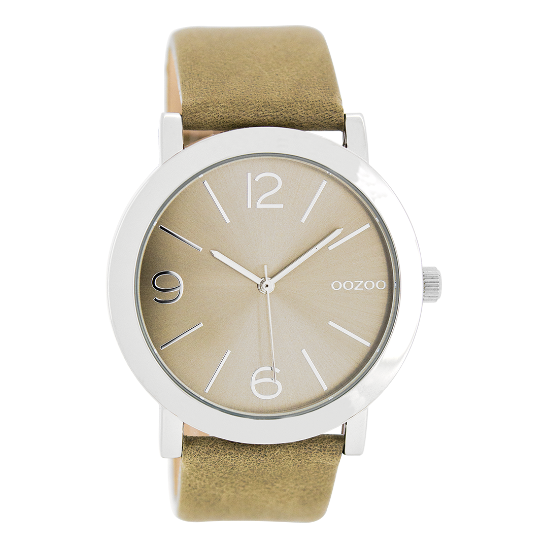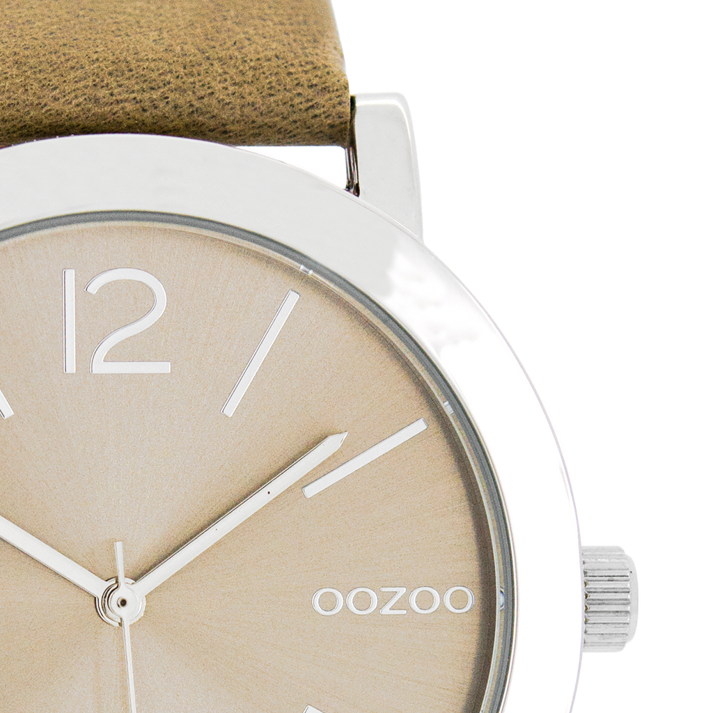 Silver coloured OOZOO watch with grey leather strap - C8712