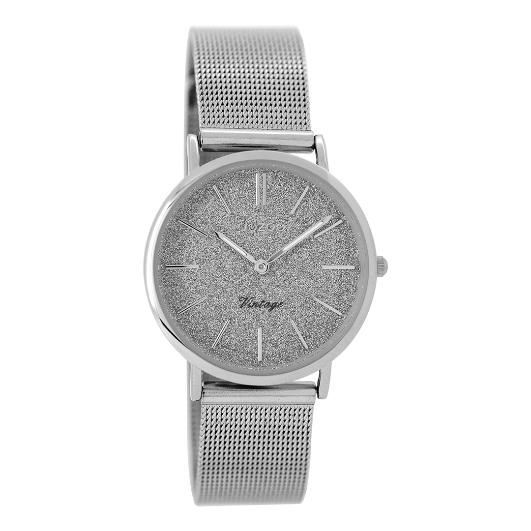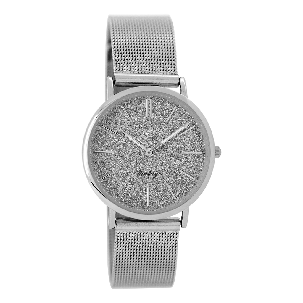 The classic look stays key in this trendy series and therefore, this round OOZOO vintage design with a playful wink is the season must-have! This ladies watch is the perfect combination of fashion and comfort with its 32 mm silver coloured metal watch case and silver coloured glitter dial. The silver coloured metal mesh bracelet makes this watch a trendy accessory, which you can wear every day. The dial has silver coloured stripes digits and matching hands. The C8837 adds the sparkle to your outfit. The mineral glass lays in a 6,9 mm slim metal watch case with IP-plating. This design has a stainless steel backplate and is nickel safe. This watch has a 2 Japanese movement and is covered by a 2 year warranty (see section 3 of our Refund, shipping & warranty policy).
