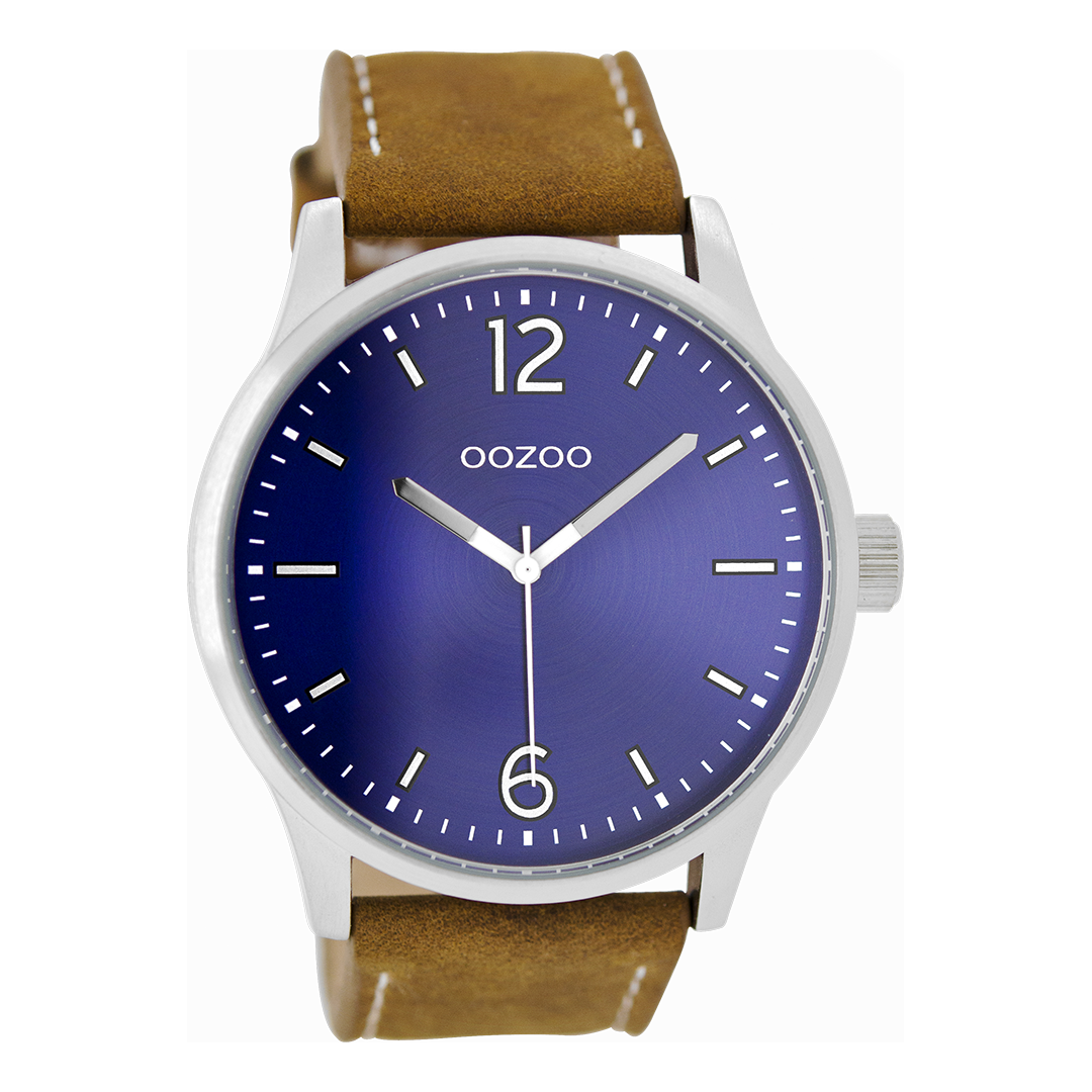Stand out with this beautiful round gents design from the trendy OOZOO Timepieces collection. The C9046 has a brown leather strap and 46 mm silver coloured metal watch case. You are making quite the fashion statement with this blue sunray dial, silver coloured stripes and numbers digits and silver coloured/white hands. This essential watch for your wardrobe has a mineral glass, stainless steel backplate and is nickel safe. This watch has a 2 Japanese movement and is covered by a 2 year warranty (see section 3 of our Refund, shipping & warranty policy).