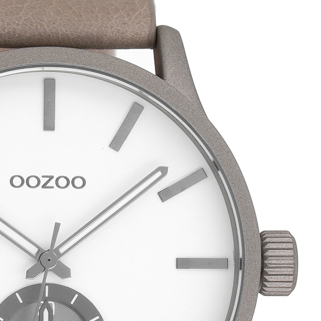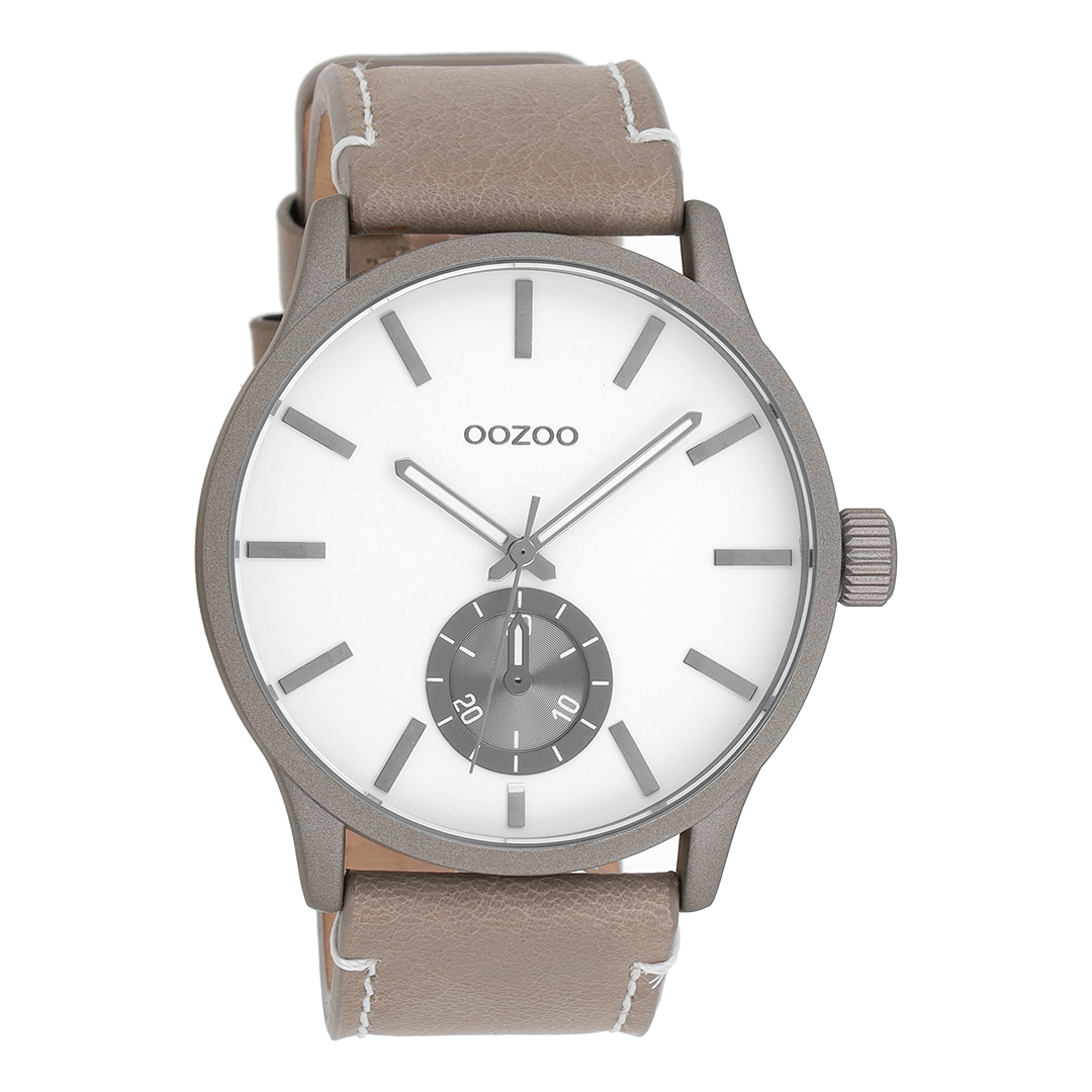 Stand out with this beautiful round gents design from the trendy OOZOO Timepieces collection. The C9080 has a taupe leather strap and 45 mm taupe metal watch case. You are making quite the fashion statement with this white chrono dial, taupe stripes digits and matching hands. This essential watch for your wardrobe has a mineral glass, stainless steel backplate and is nickel safe. This watch has a 2 Japanese movement and is covered by a 2 year warranty (see section 3 of our Refund, shipping & warranty policy).