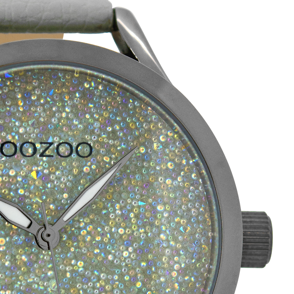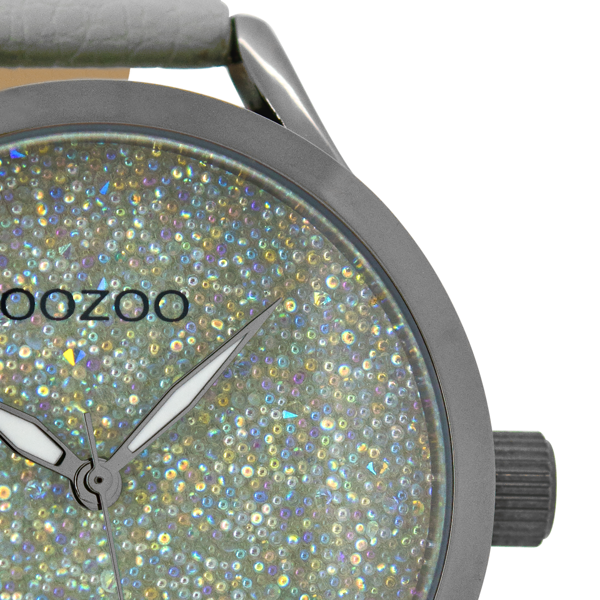 Titanium OOZOO watch with stone grey leather strap - C9125