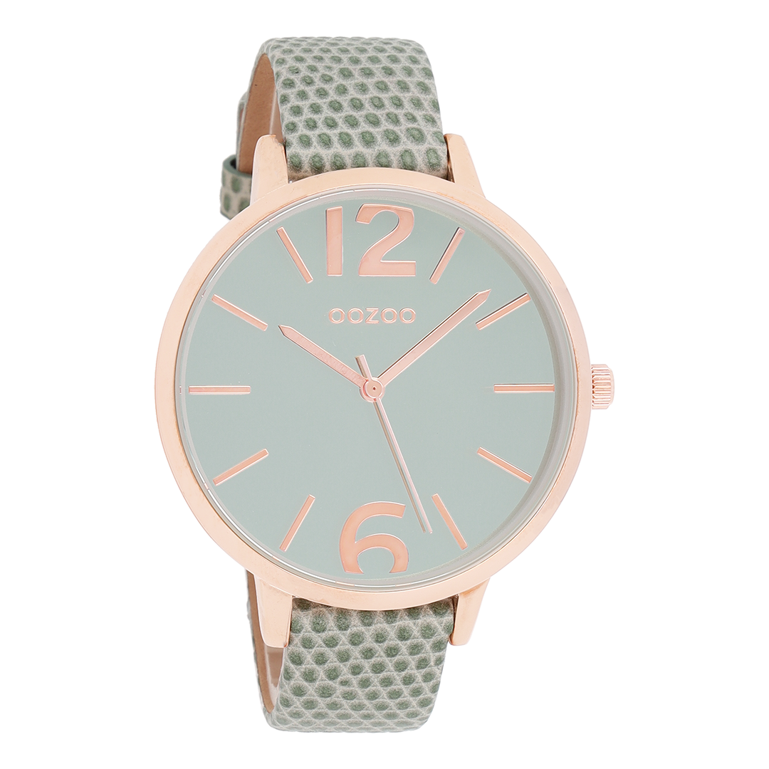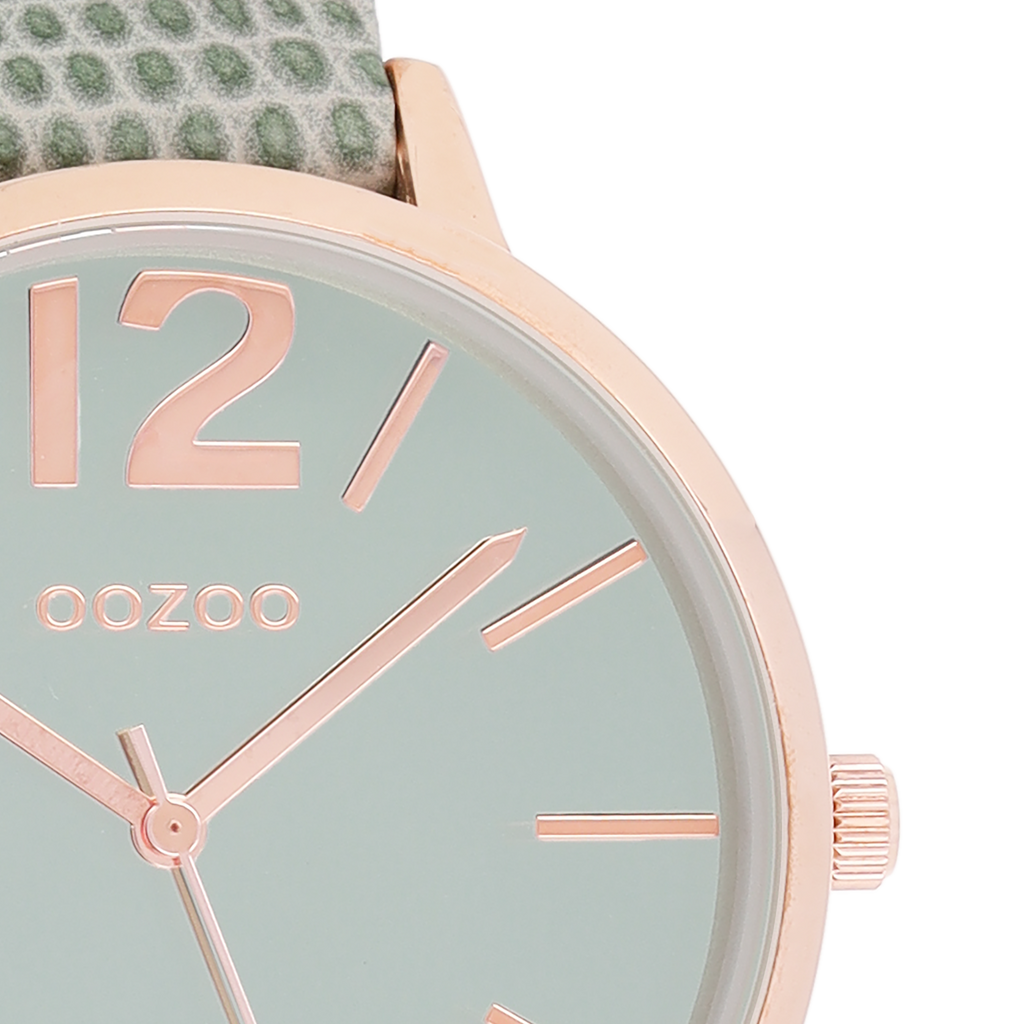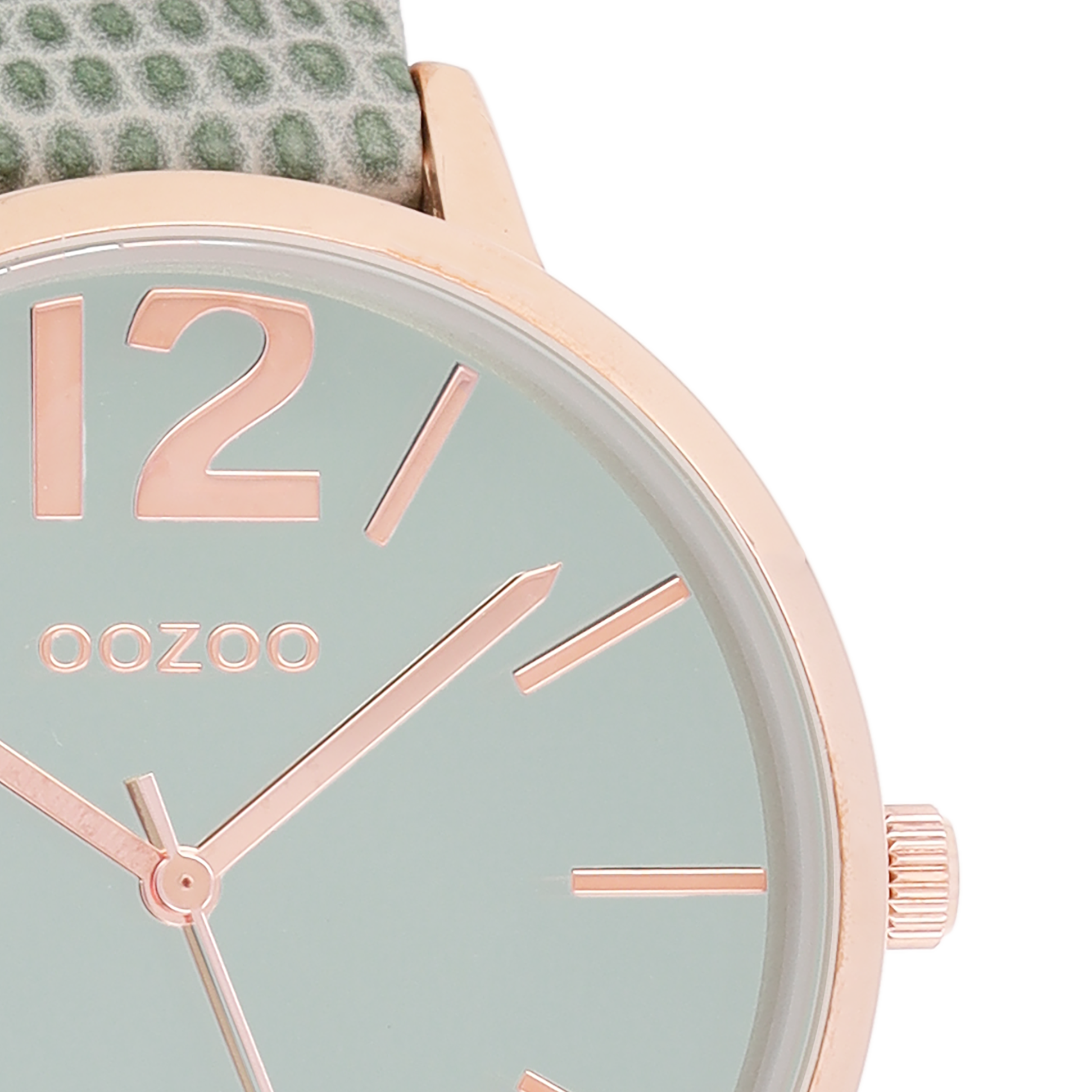 Rose gold coloured OOZOO watch with green leather strap - C9152