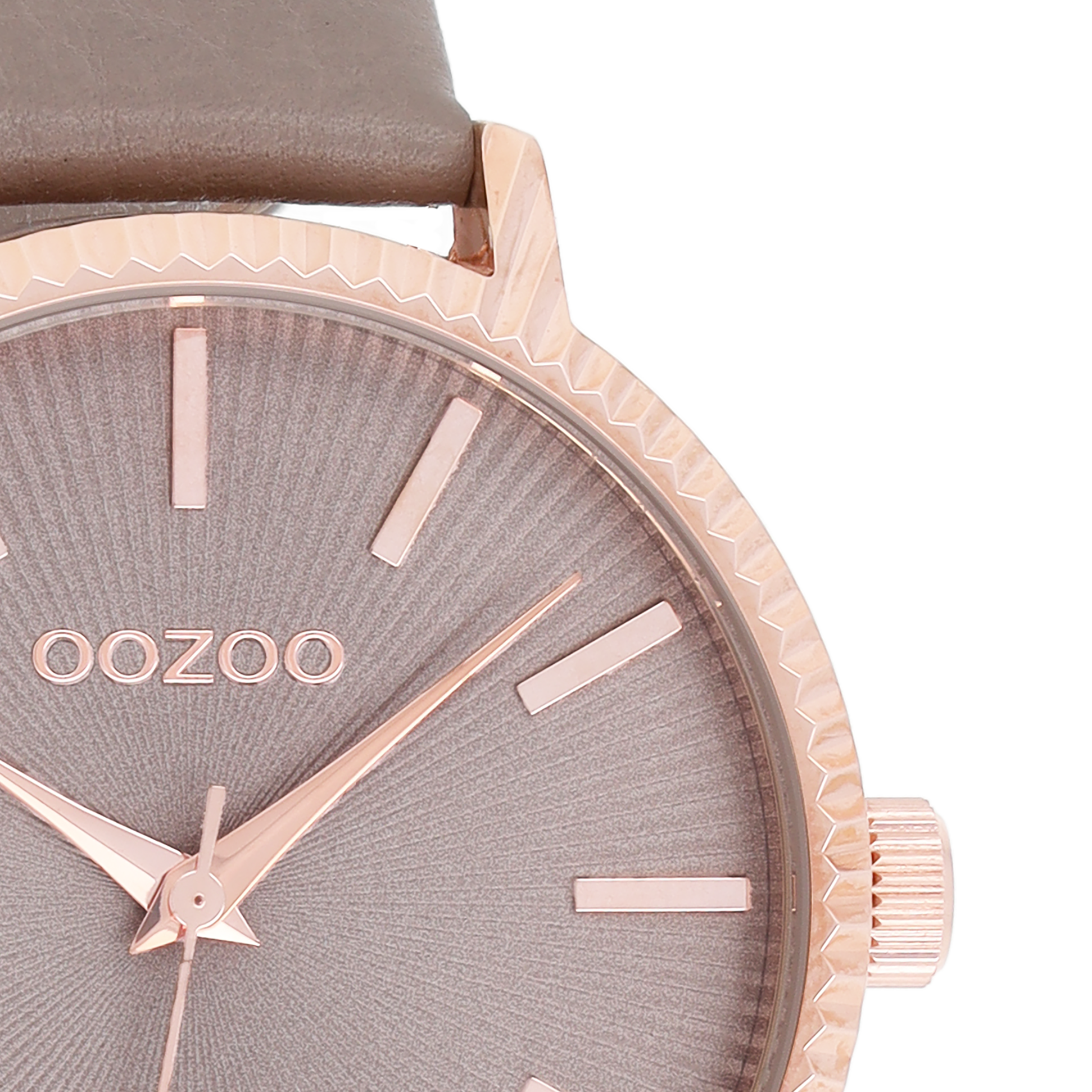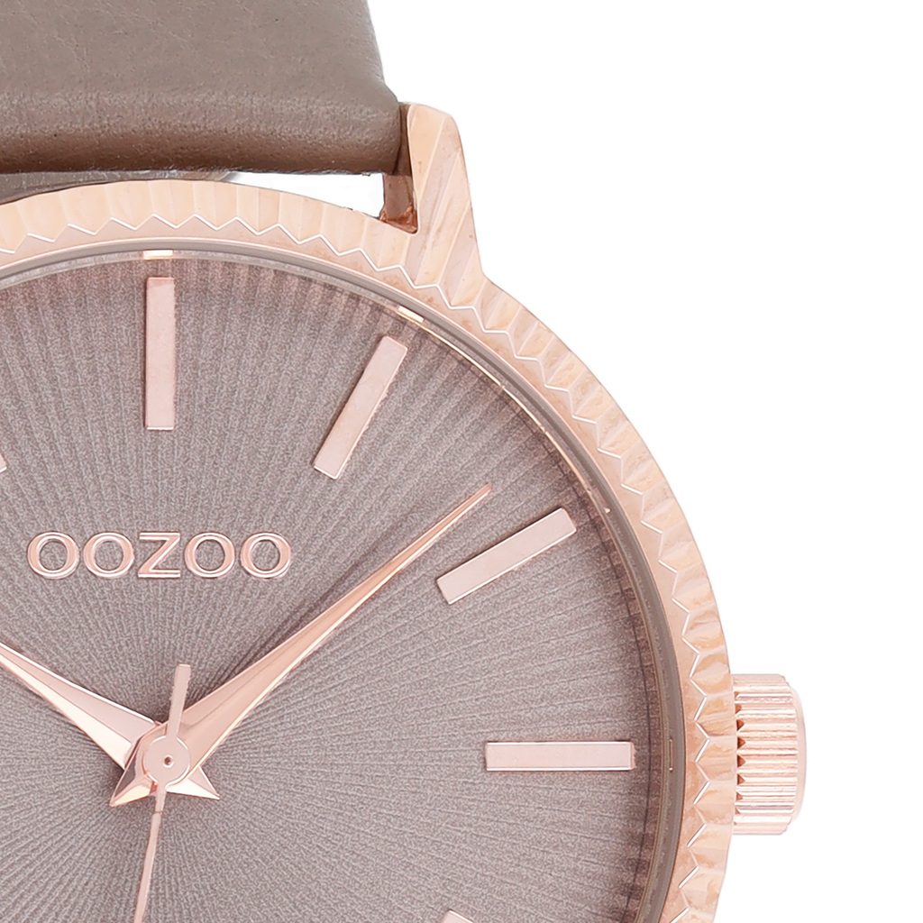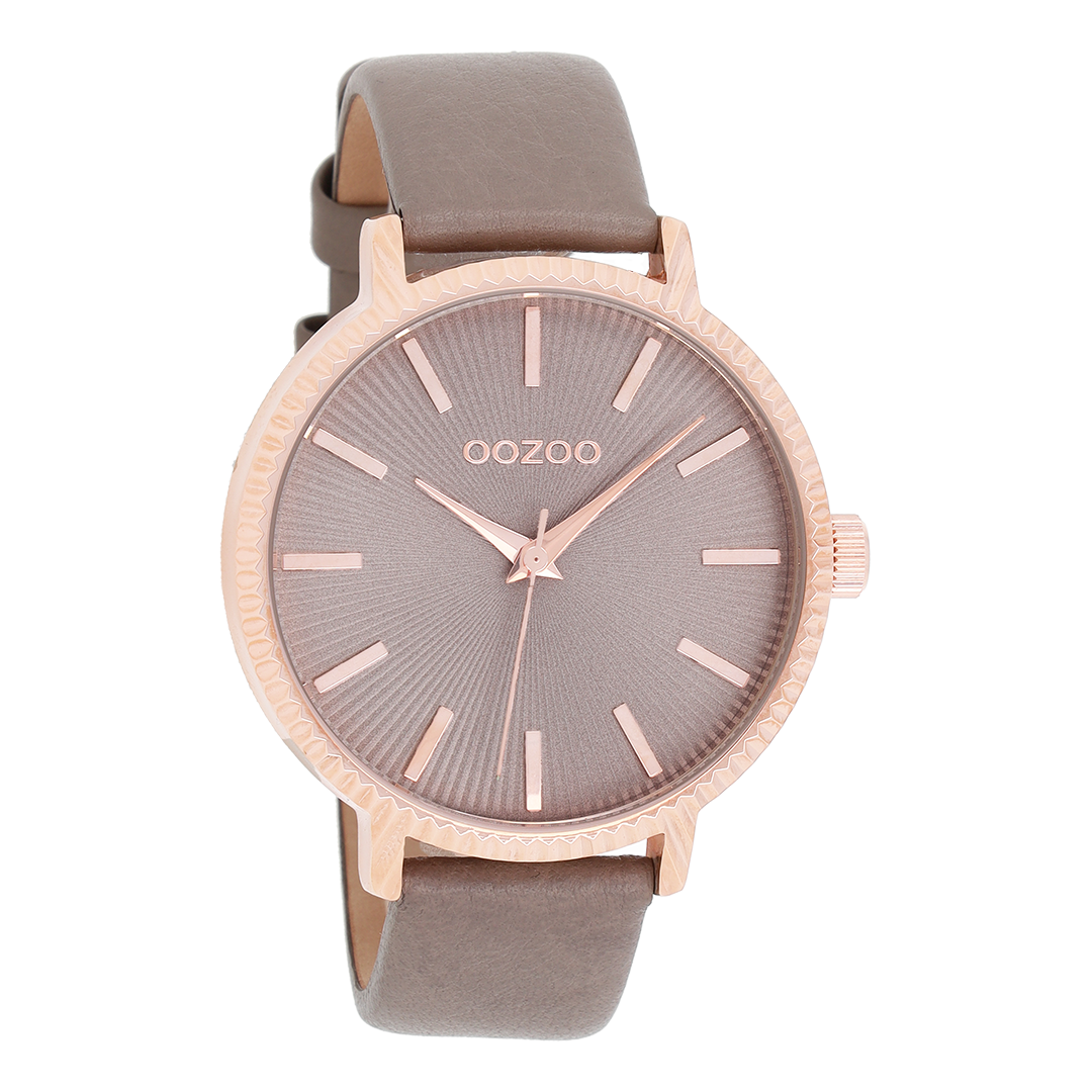 Rose gold coloured OOZOO watch with taupe leather strap - C9197