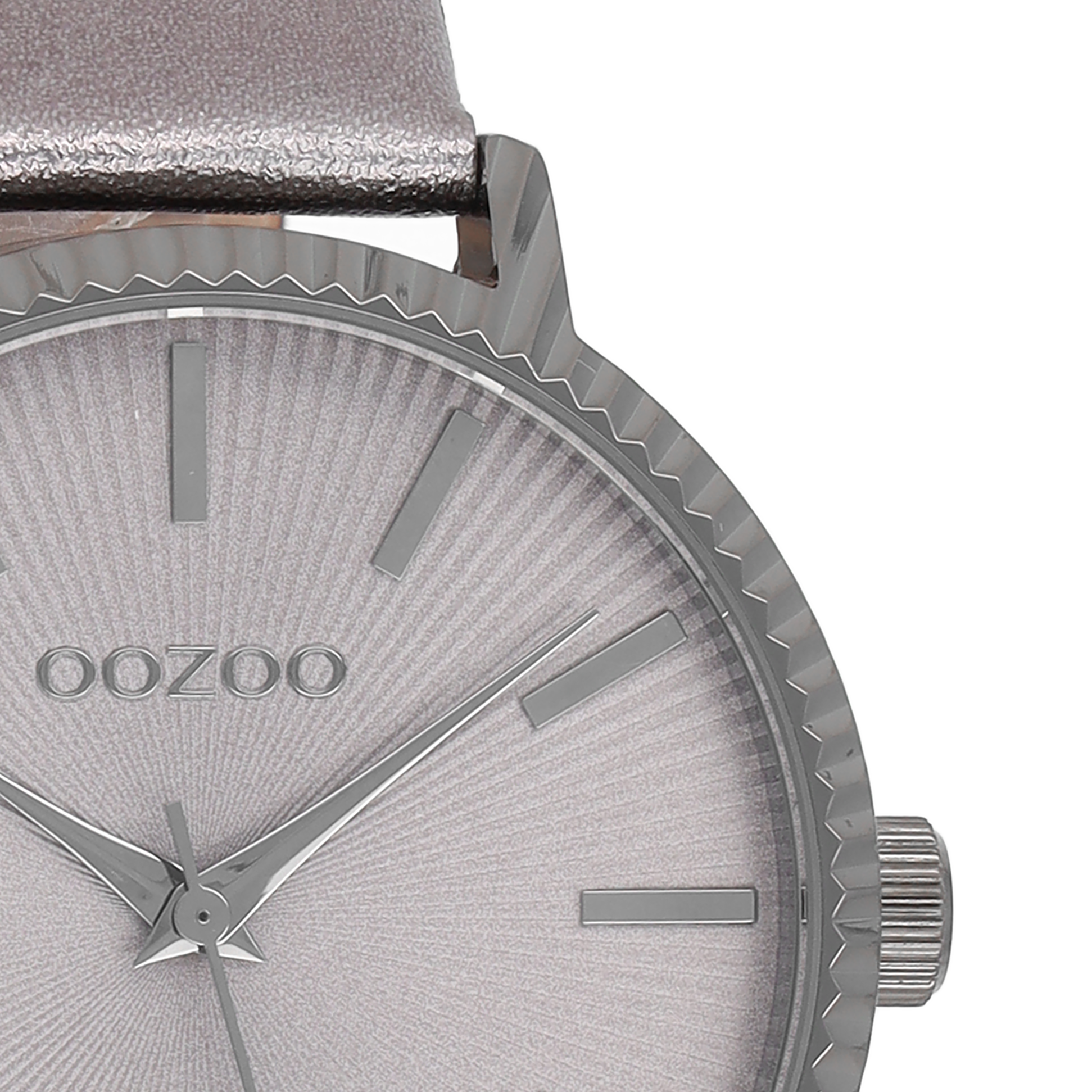 Titanium OOZOO watch with silver coloured leather strap - C9198