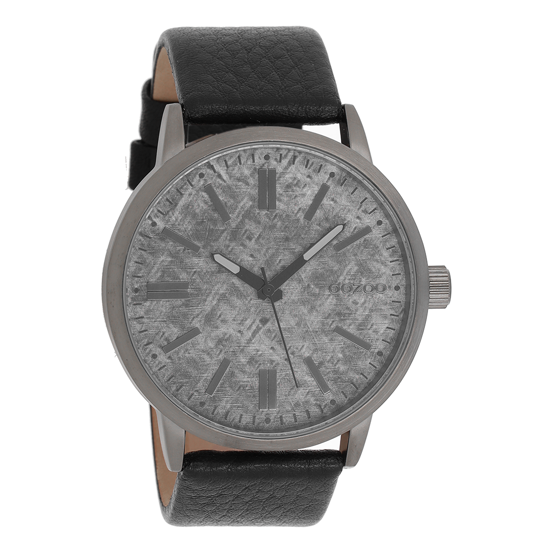 Stand out with this beautiful round gents design from the trendy OOZOO Timepieces collection. The C9409 has a black leather strap and 48 mm titanium metal watch case. You are making quite the fashion statement with this black grit dial, titanium stripes digits and black/grey hands. This essential watch for your wardrobe has a mineral glass, stainless steel backplate and is nickel safe. This watch has a 2 Japanese movement and is covered by a 2 year warranty (see section 3 of our Refund, shipping & warranty policy).