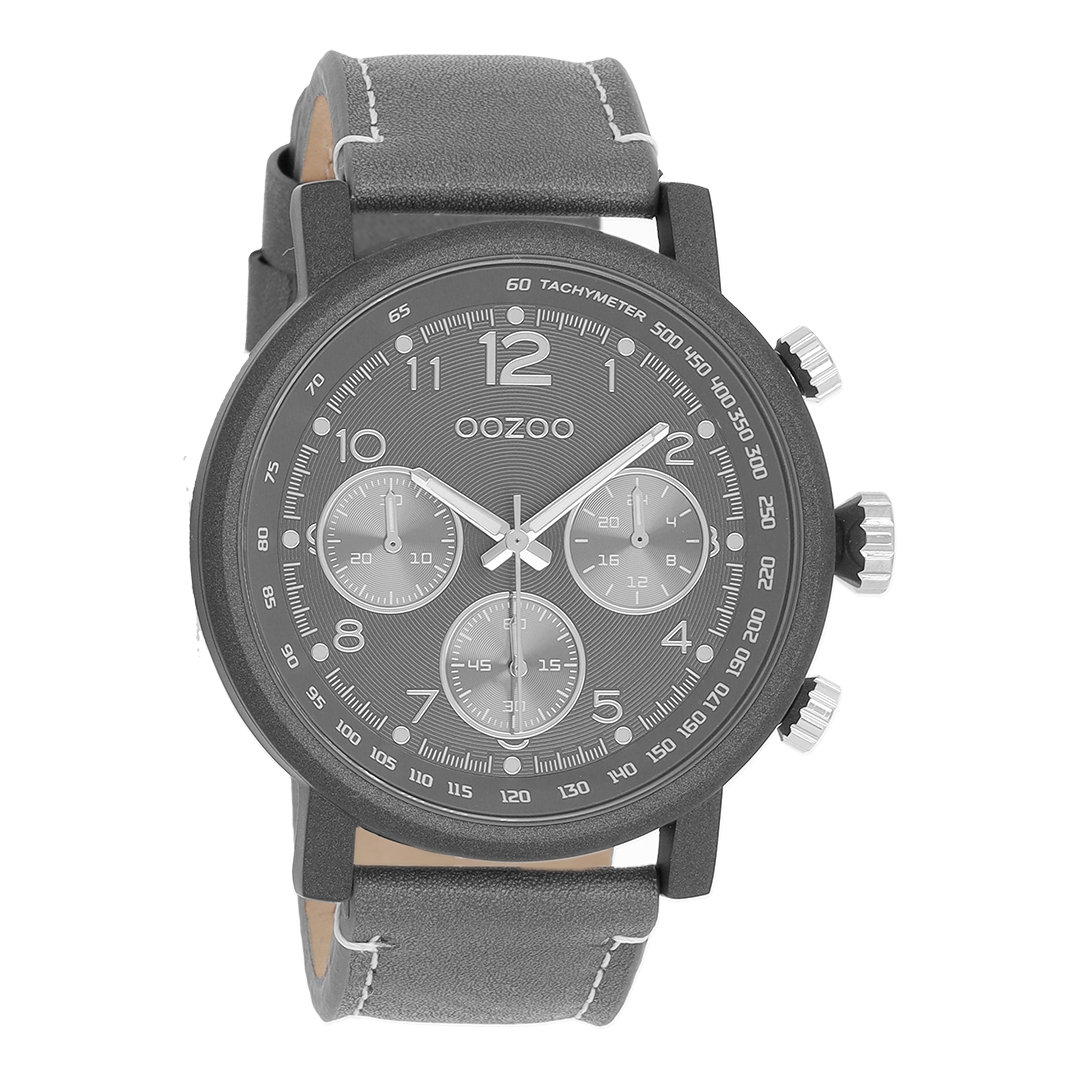 Titanium OOZOO watch with stone grey leather strap - C9458