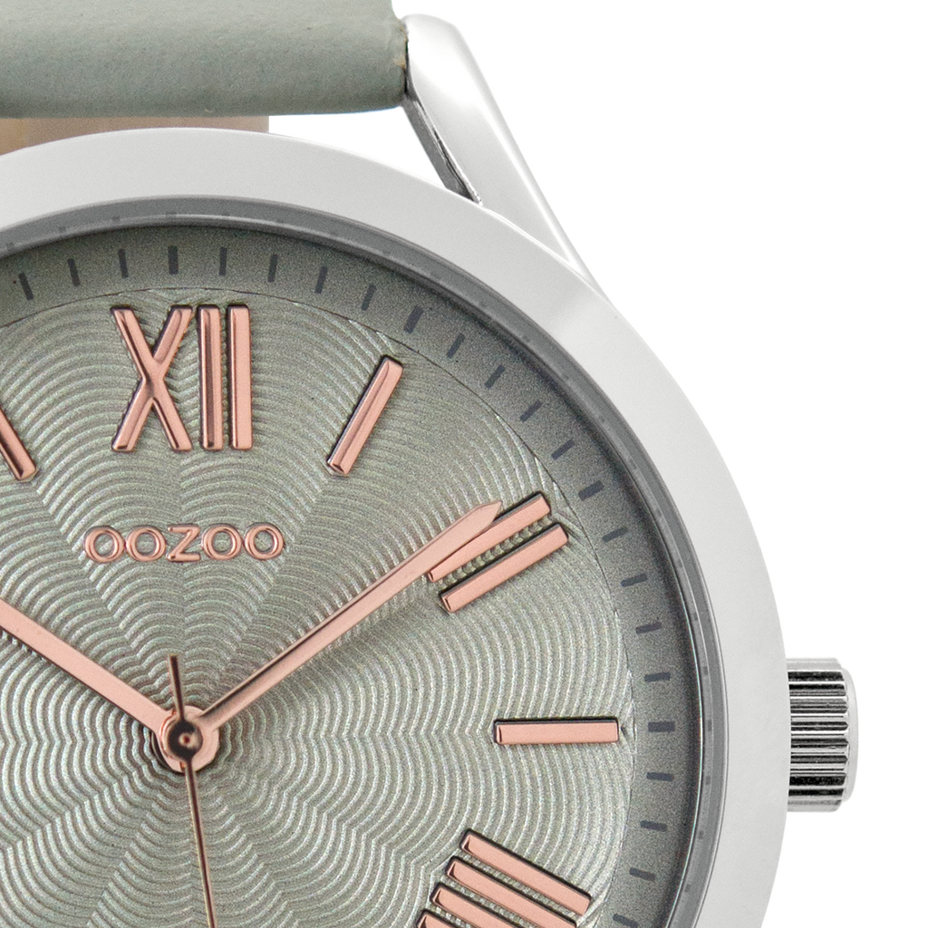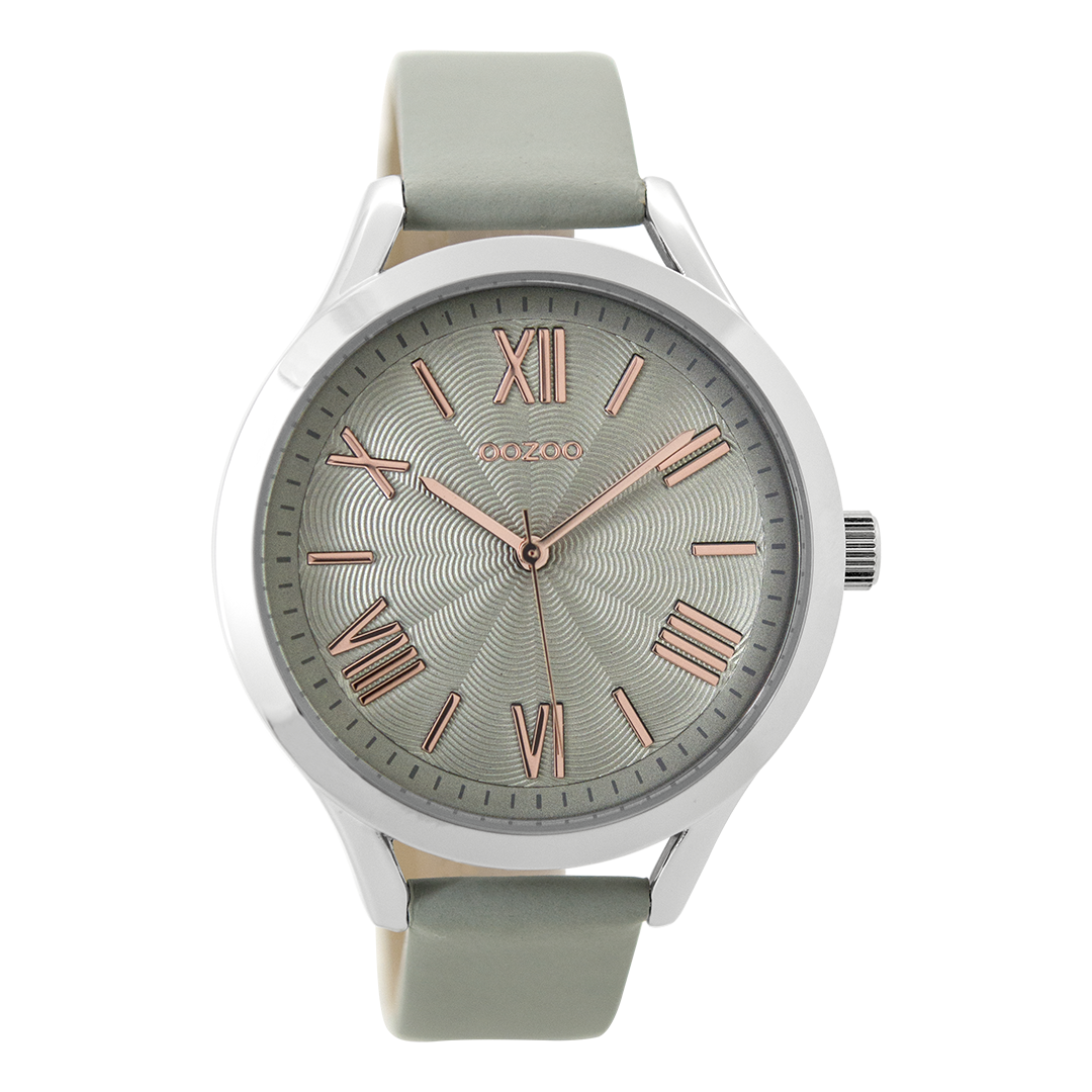 Silver coloured OOZOO watch with stone grey leather strap - C9477