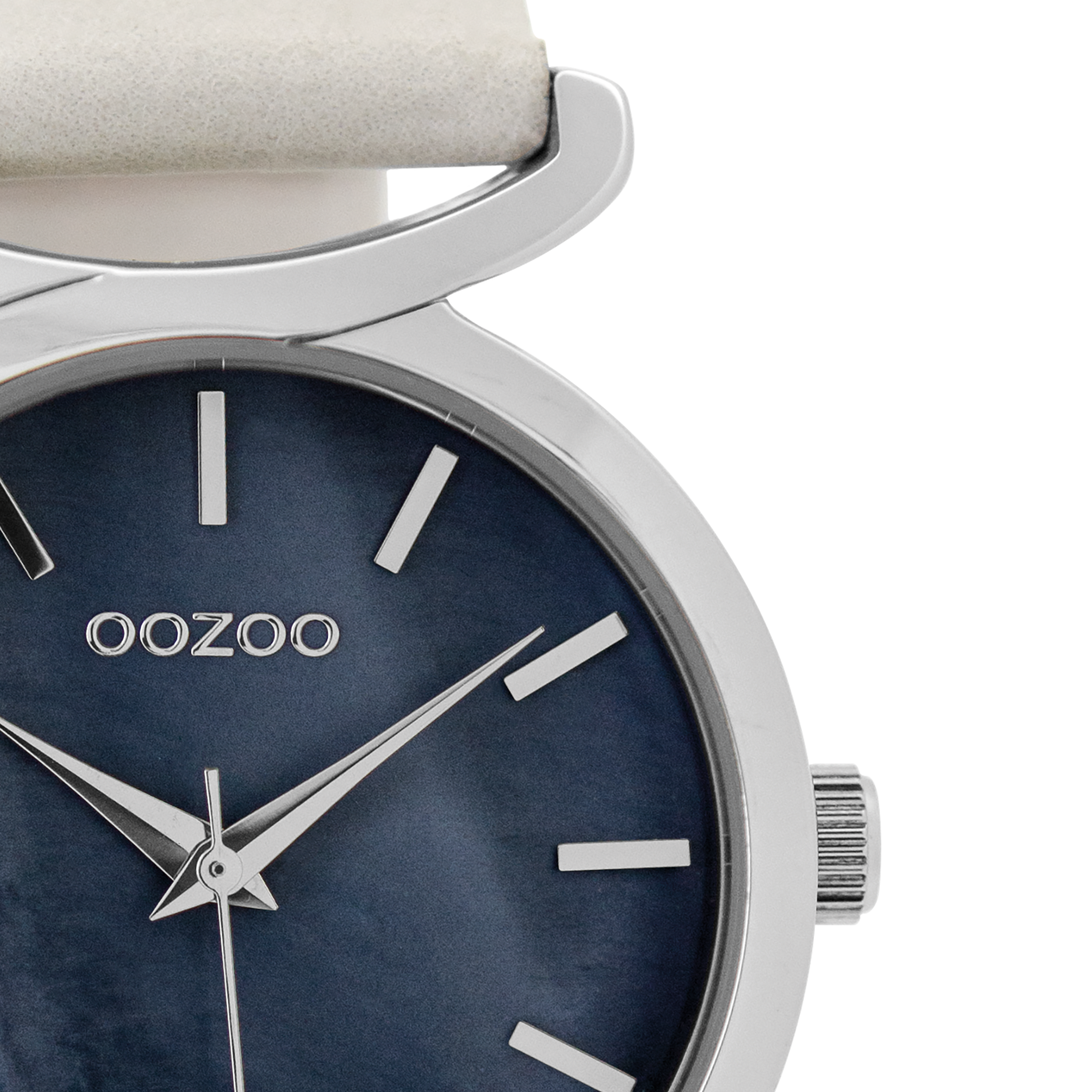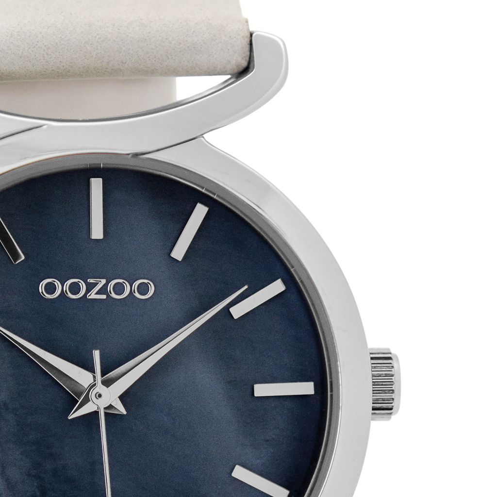 Stand out with this beautiful round ladies design from the trendy OOZOO Timepieces collection. The C9525 has a white leather strap and 36 mm silver coloured metal watch case. You are making quite the fashion statement with this dark grey pearl dial, silver coloured stripes digits and matching hands. This essential watch for your wardrobe has a mineral glass, stainless steel backplate and is nickel safe. This watch has a 2 Japanese movement and is covered by a 2 year warranty (see section 3 of our Refund, shipping & warranty policy).