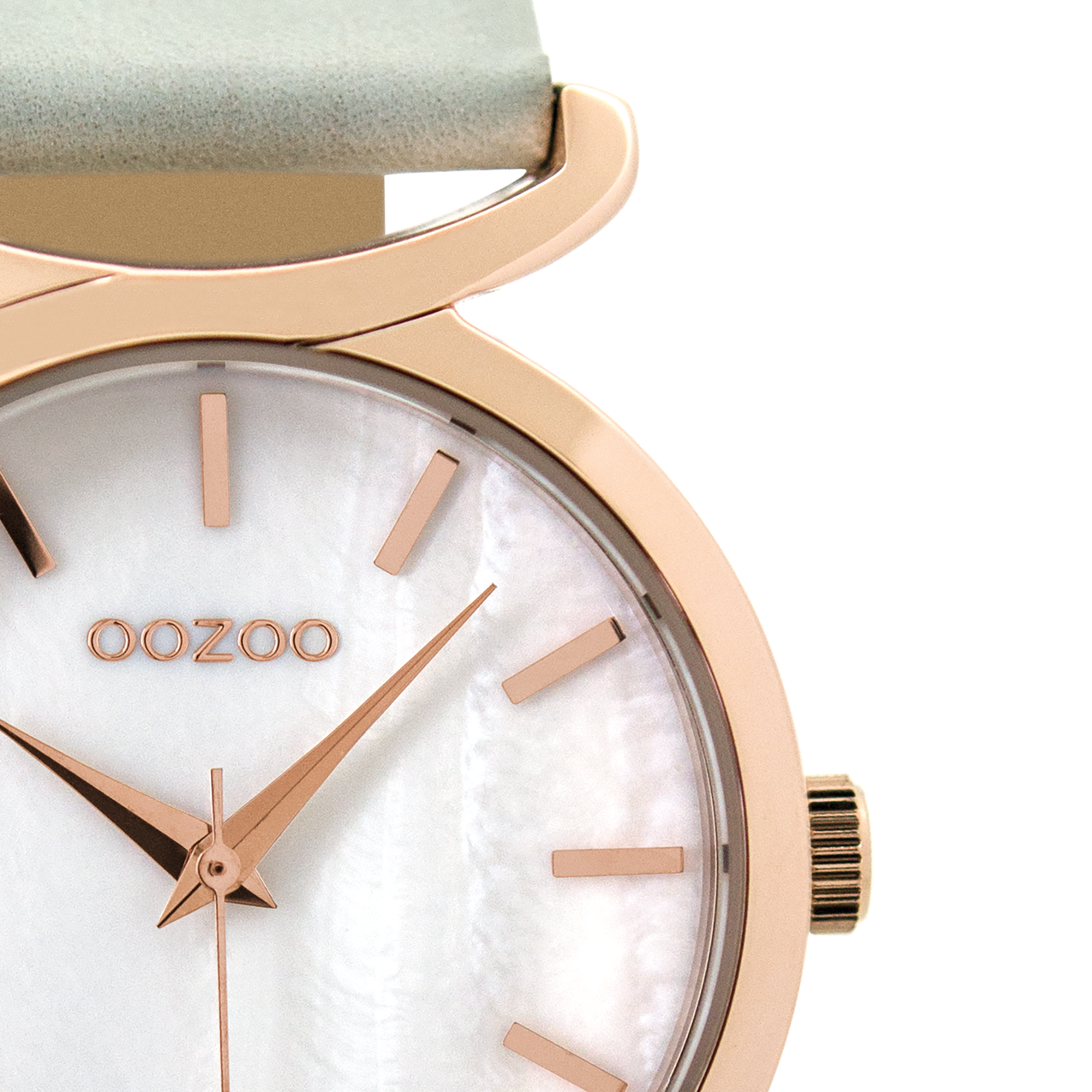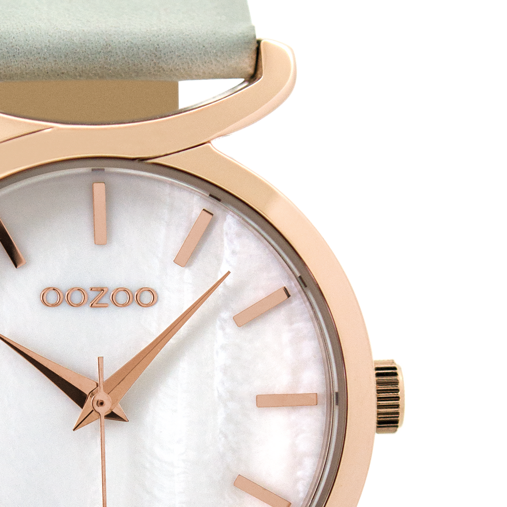 Rose gold coloured OOZOO watch with light blue leather strap - C9527