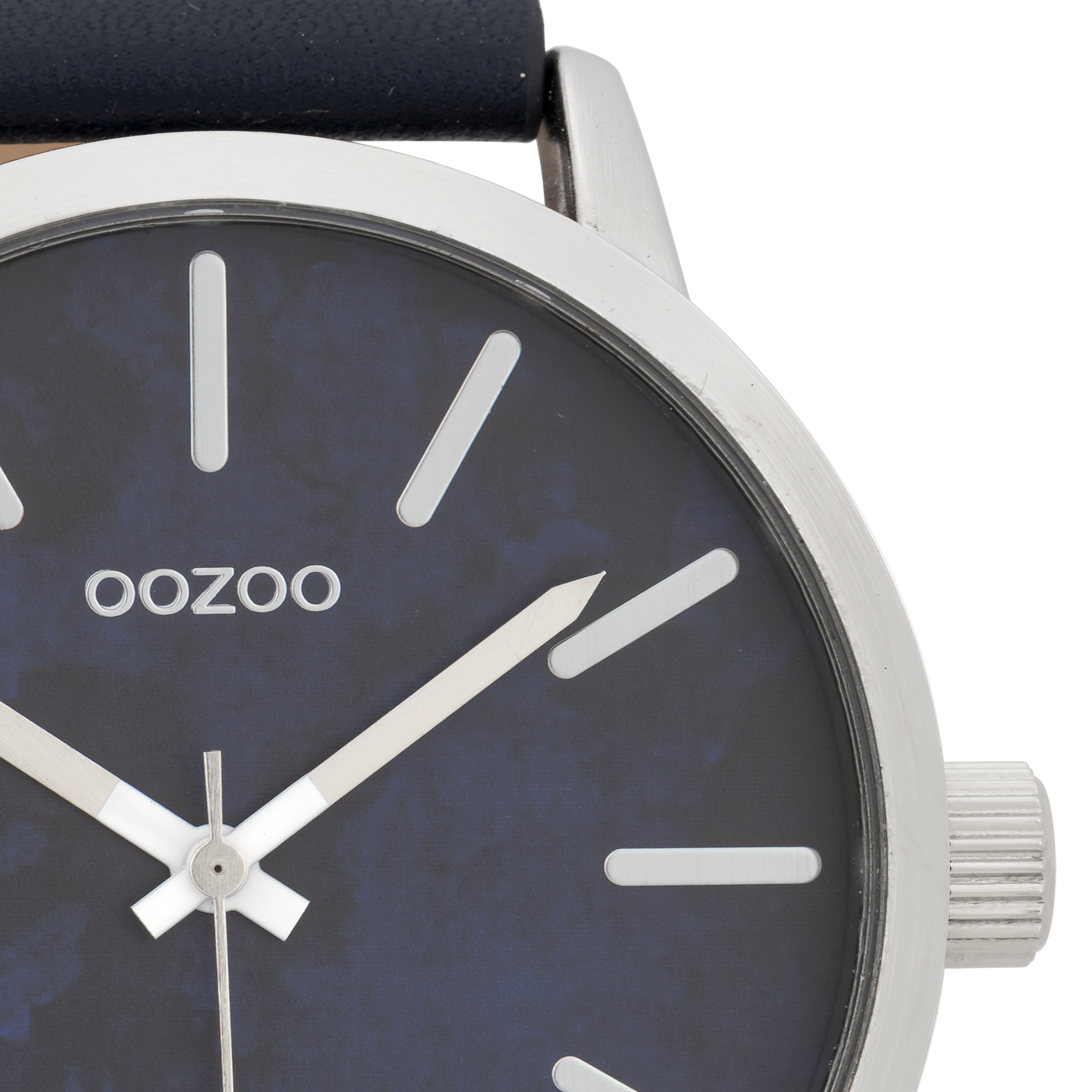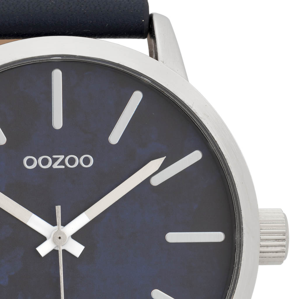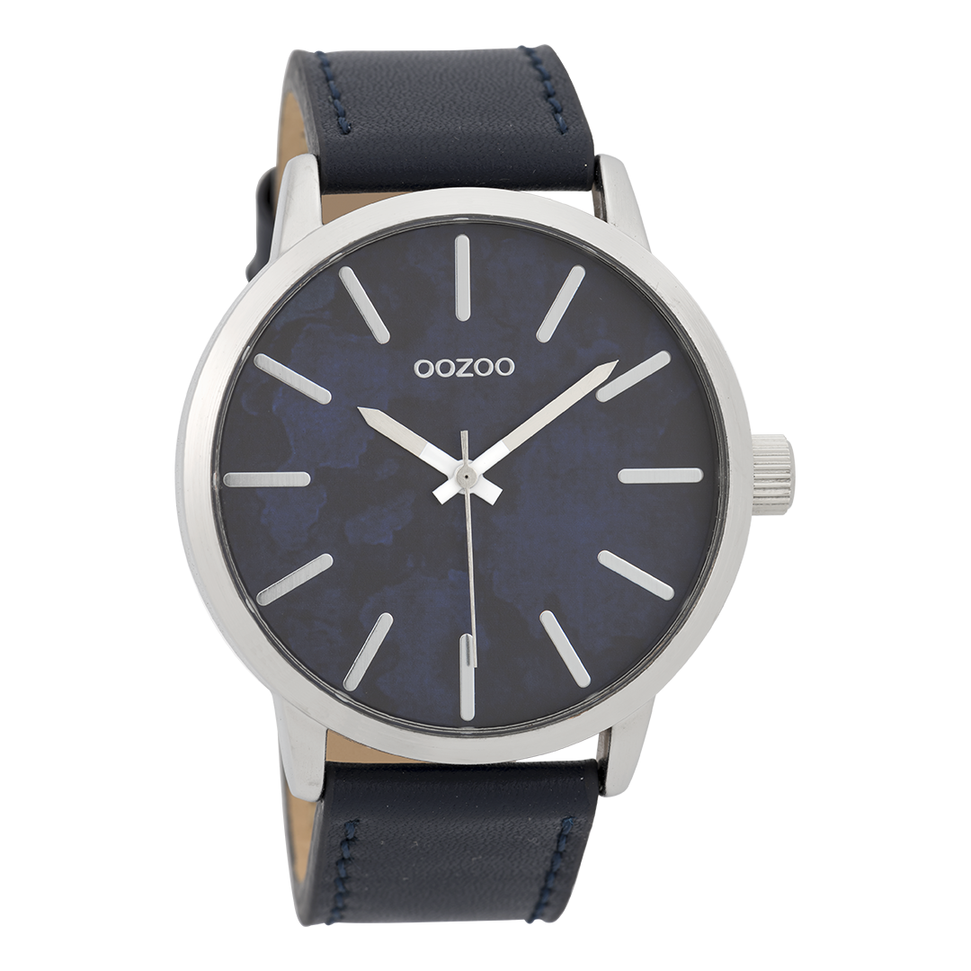 Silver coloured OOZOO watch with dark blue leather strap - C9602