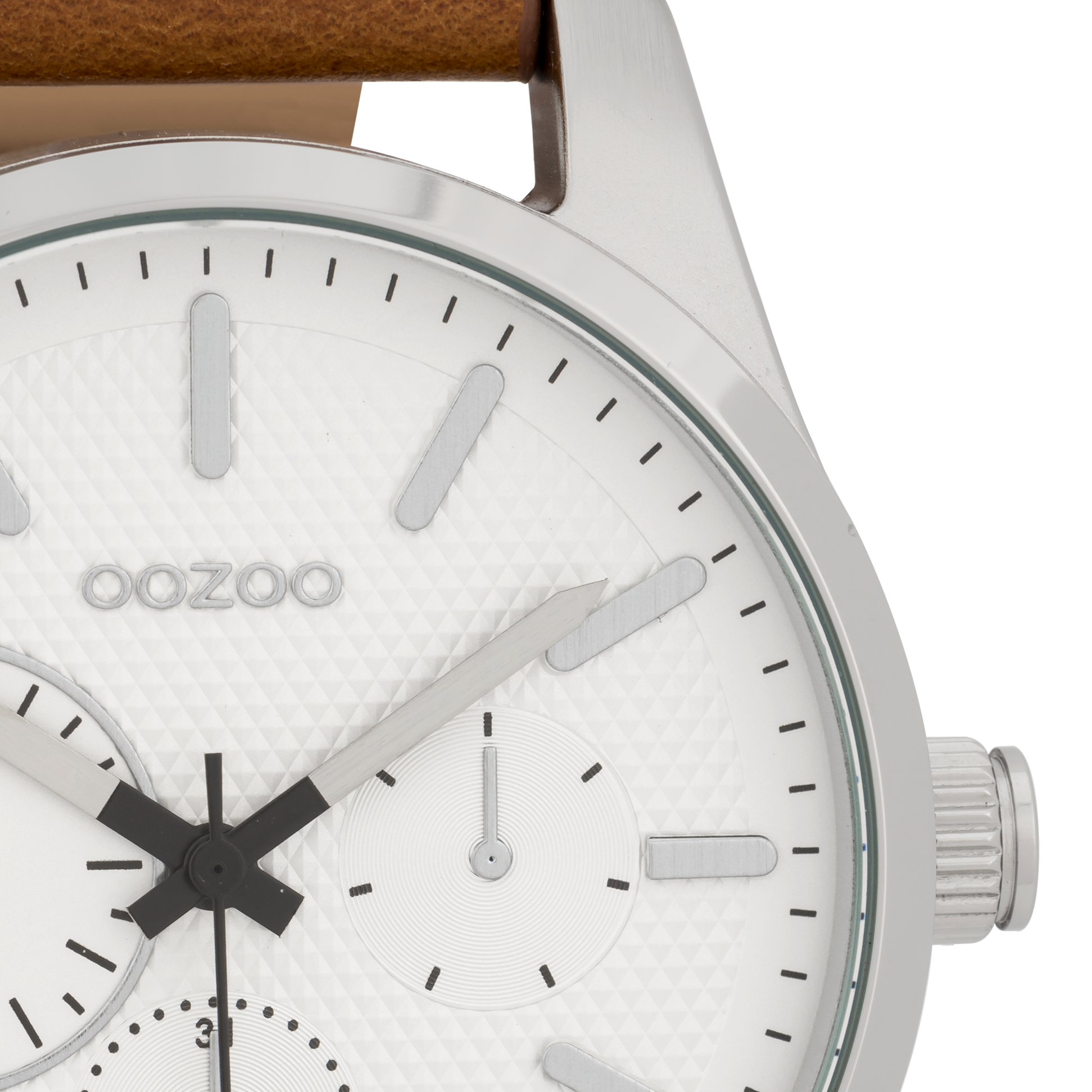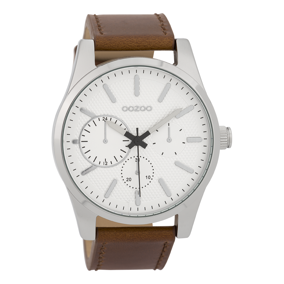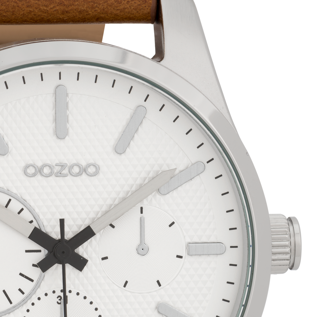 Silver coloured OOZOO watch with brown leather strap - C9616
